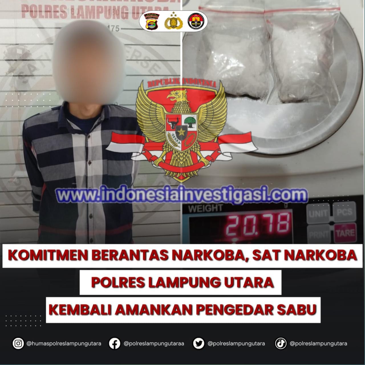 Saat dikonfirmasi, Kapolres Lampung Utara AKBP Deddy Kurniawan melalui Kasat Narkoba AKP Eko Heri membenarkan penangkapan tersebut dan menjelaskan kronologis kejadian bahwa berawal dari informasi masyarakat tentang adanya pelaku tindak pidana narkotika jenis sabu di lokasi tersebut.