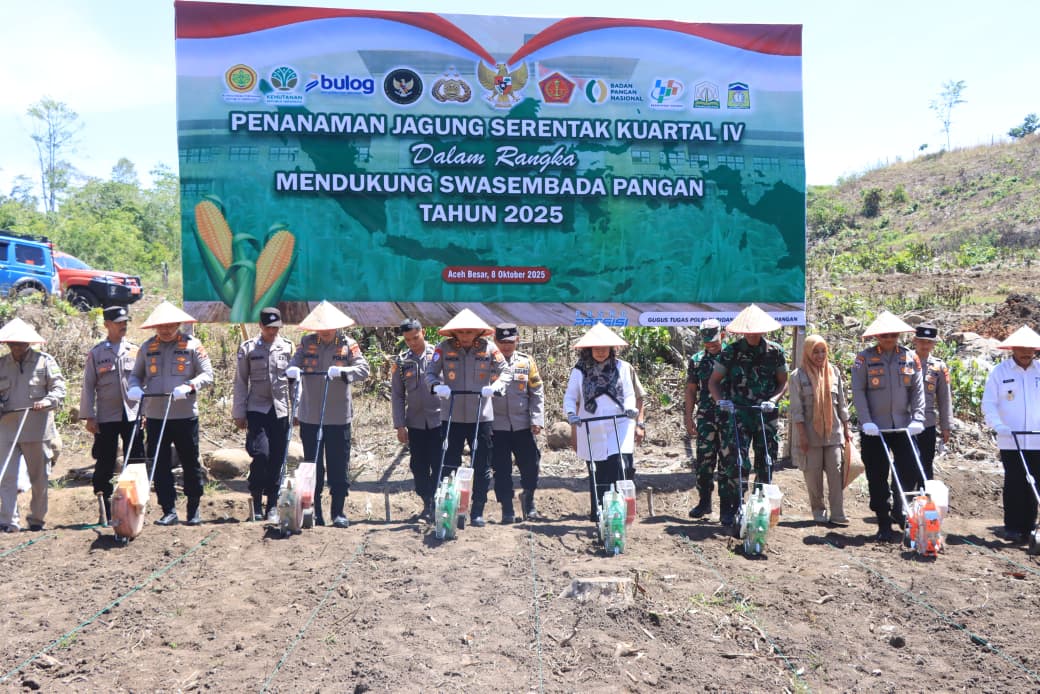 Hal itu disampaikan Kapolda Aceh, Irjen Pol. Marzuki Ali Basyah, saat melaksanakan penanaman jagung serentak kuartal IV di Desa Suka Damai, Kecamatan Lembah Seulawah, Kabupaten Aceh Besar, Rabu, 8 Oktober 2025.