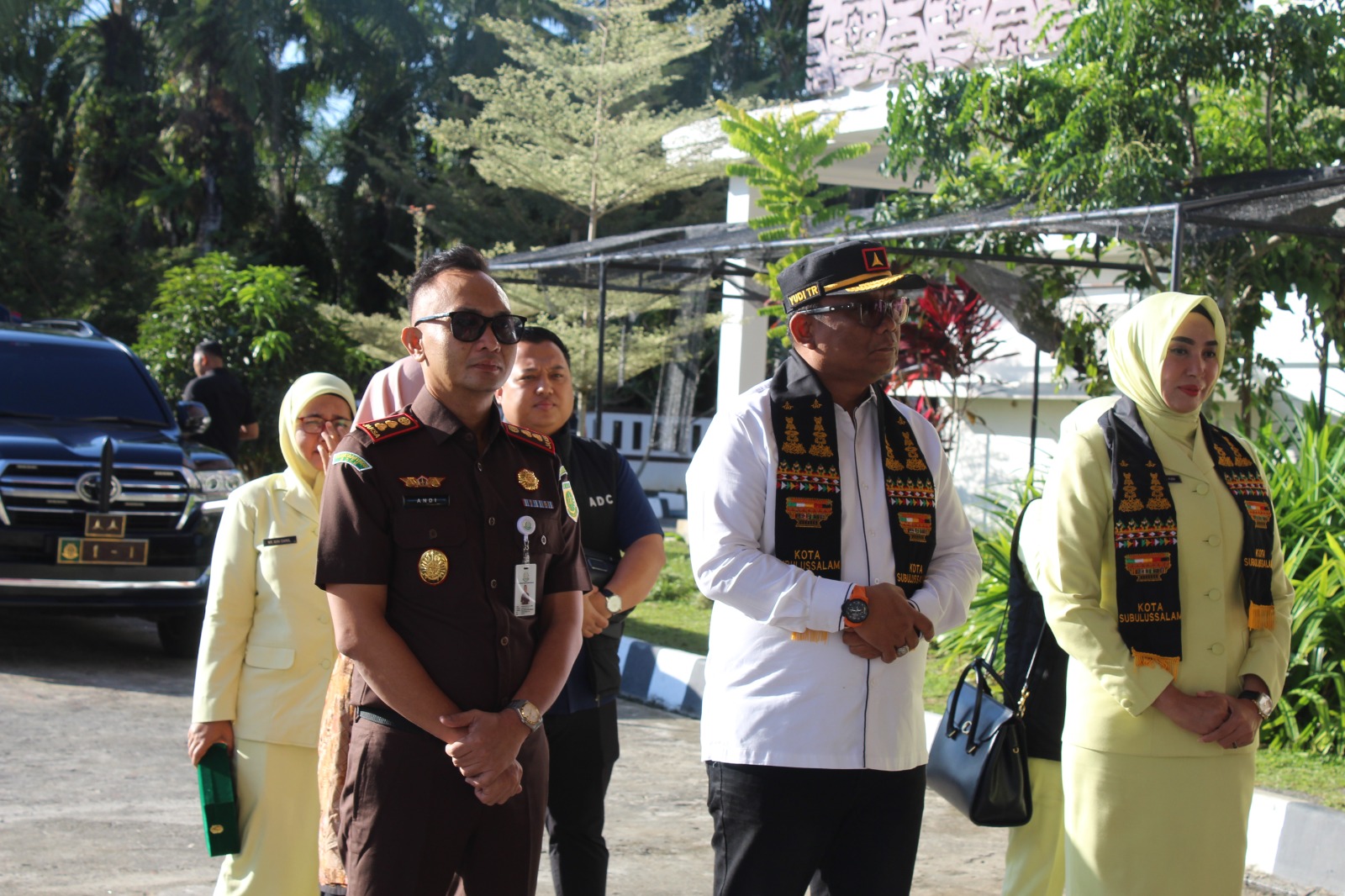 Kedatangan Kajati Aceh Yudi Triadi SH.MH,berserta Ketua Ikatan Adhyaksa Darmakarini (IAD) Juraida Yudi Triadi asisten perdata dan tata usaha negara Nilawati ,S.H.M.H, disambut oleh Kepala Kejari Subulussalam, Andie Saputra, SH., CRMO, beserta seluruh pegawai dengan pengalungan syal secara simbolis, dilanjutkan dengan tari dampeng dan yel-yel pembangunan zona integritas wilayah bebas dari korupsi.