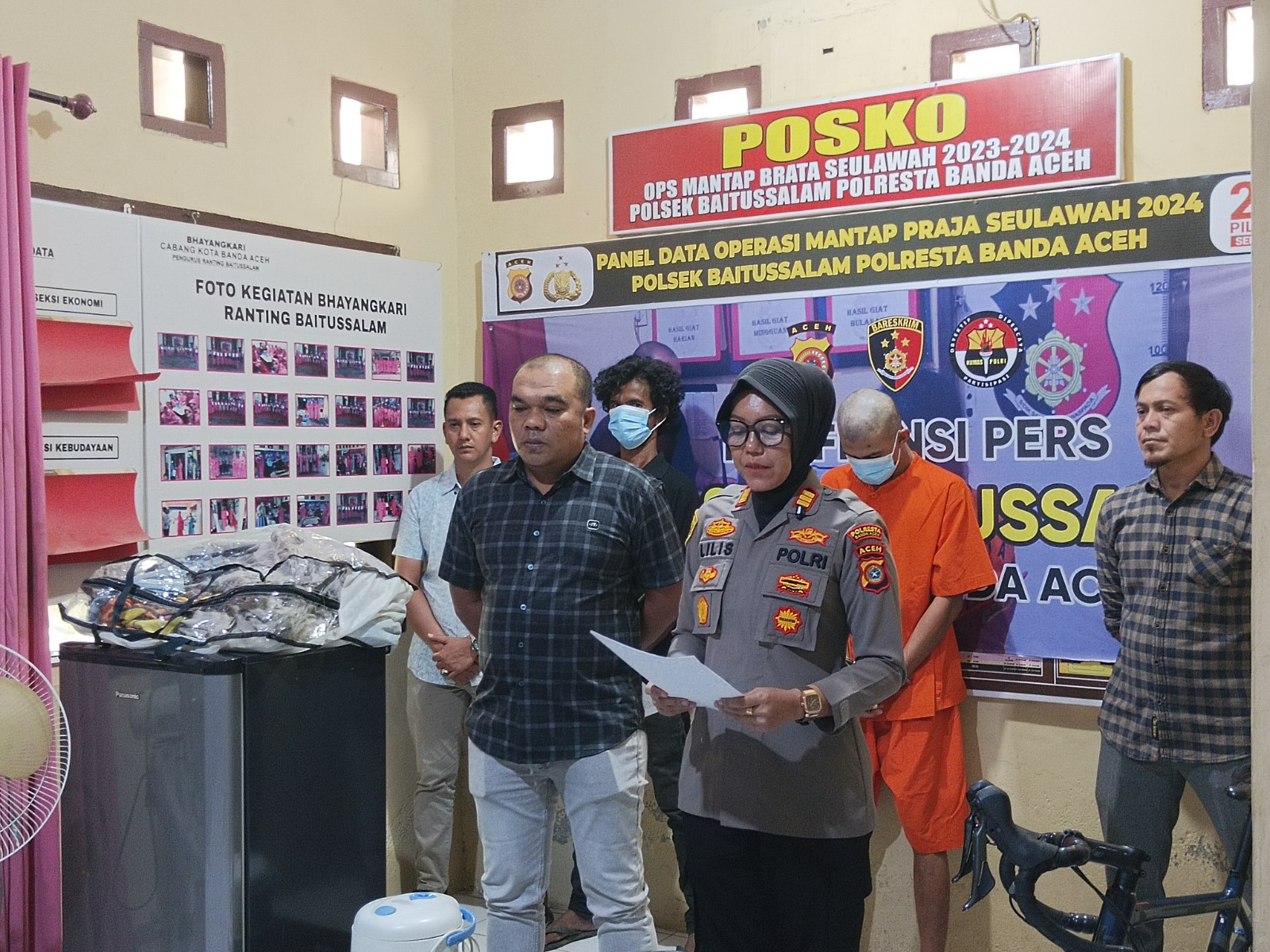 Banda Aceh – Kurang dari 24 jam, sebanyak dua tersangka maling berinisial ZF (31) dan MK (42) diciduk personel Polsek Baitussalam Polresta Banda Aceh di rumah tersangka, kawasan kecamatan setempat, Senin (18/8/2025) 02.00 WIB dini hari.