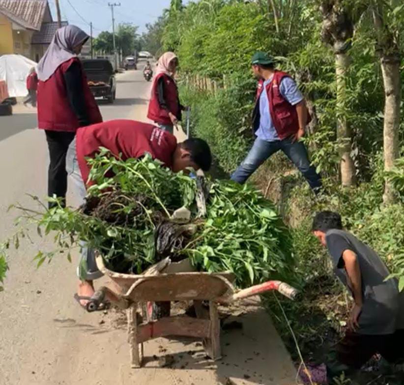 Selain itu, mahasiswa juga melakukan penataan area sekitar jalan dusun agar terlihat lebih rapi dan tidak menghambat aliran air. Pembersihan parit menjadi salah satu prioritas utama karena berperan penting dalam menjaga kelancaran drainase serta mengurangi potensi genangan air saat hujan turun.