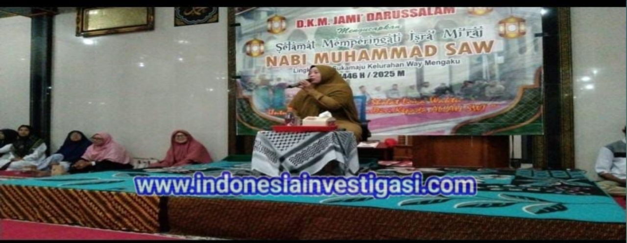 Lampung Barat – Masjid Darussalam Suka maju, Way Mengaku, Balik Bukit ,Kabupaten Lampung Barat, menggelar peringatan Isra’ Mi’raj Nabi Muhammad SAW. Pada Malam Senin (26/01/2025)