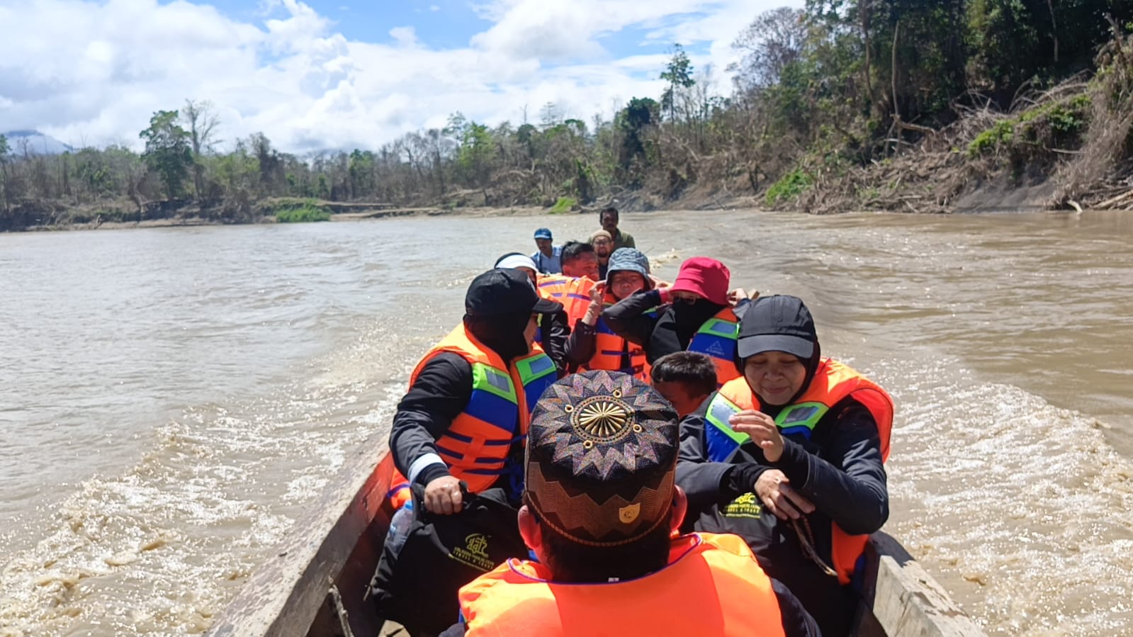 ACEH UTARA – Perjalanan itu tidak mudah. Rombongan relawan dari Halaqah Mukhlisin harus menyusuri aliran Sungai Jambo Aye selama hampir satu jam menggunakan boat kecil, membelah arus yang tenang namun menyimpan jejak duka. Setelah itu, mereka masih harus menapaki jalanan mendaki dan sunyi menuju Dusun Sarah Raja, Gampong Leubok Pusaka, Kecamatan Langkahan, Kabupaten Aceh Utara, Rabu (18/02/2026).