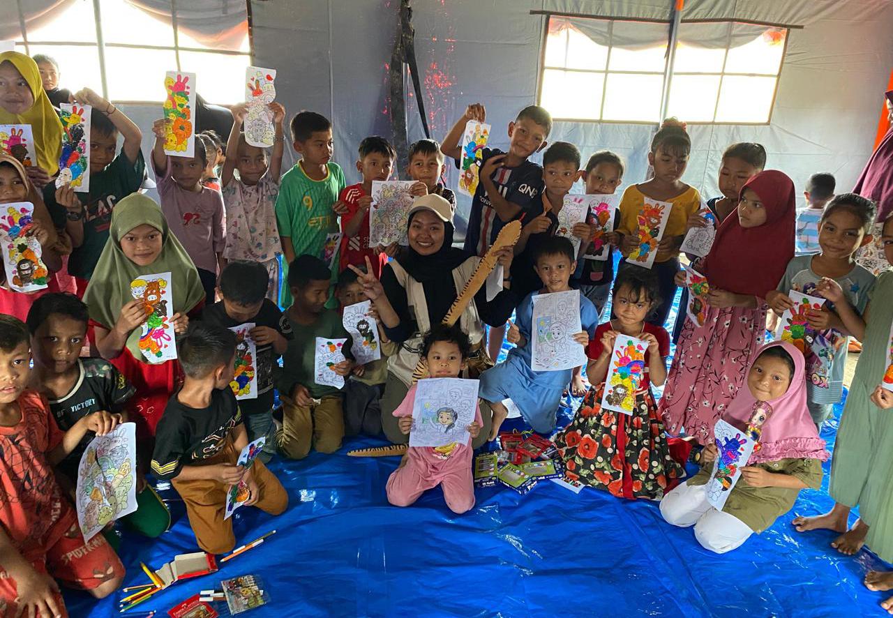 Sementara itu, di Kabupaten Bireuen, kegiatan dipusatkan di Desa Balee Panah, Kecamatan Juli, salah satu kawasan dengan dampak banjir paling berat. Di wilayah ini, 114 kepala keluarga terpaksa mengungsi, 55 rumah hilang total akibat perubahan alur sungai, dan 42 rumah lainnya berada dalam kondisi sangat berisiko. Dukungan psikososial di lokasi pengungsian diikuti oleh 117 anak, 5 ibu menyusui, dan 10 lansia, yang selama ini hidup dalam ketidakpastian.