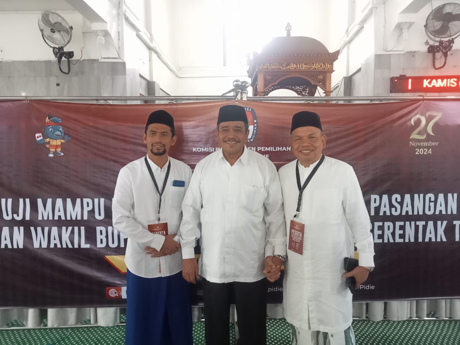 Pidie, Aceh – Paslon bupati dan wakil Bupati H Zakaria Agani- Dr Imran Abubakar di ketahui memang orang yang A’lim dalam ilmu agama, maka publik sudah tidak heran di saat mendengarkan Zakaria membacakan ayat suci Al-Quran di acara tes uji baca alquran yang di selenggarakan oleh KIP Pidie di mesjid Agung Al-Falah kota sigli, kamis 05 September 2024.