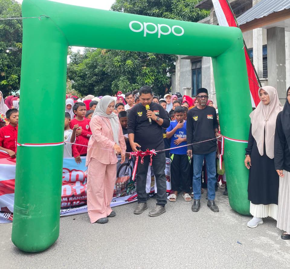 BIREUEN – Semarak kemerdekaan mewarnai Gampong Lhok Awe Teungoh, Kecamatan Kota Juang, Kabupaten Bireuen, saat pemerintah gampong bersama masyarakat menggelar jalan santai dalam rangka memperingati HUT ke-80 Republik Indonesia, Minggu (24/8/2025).