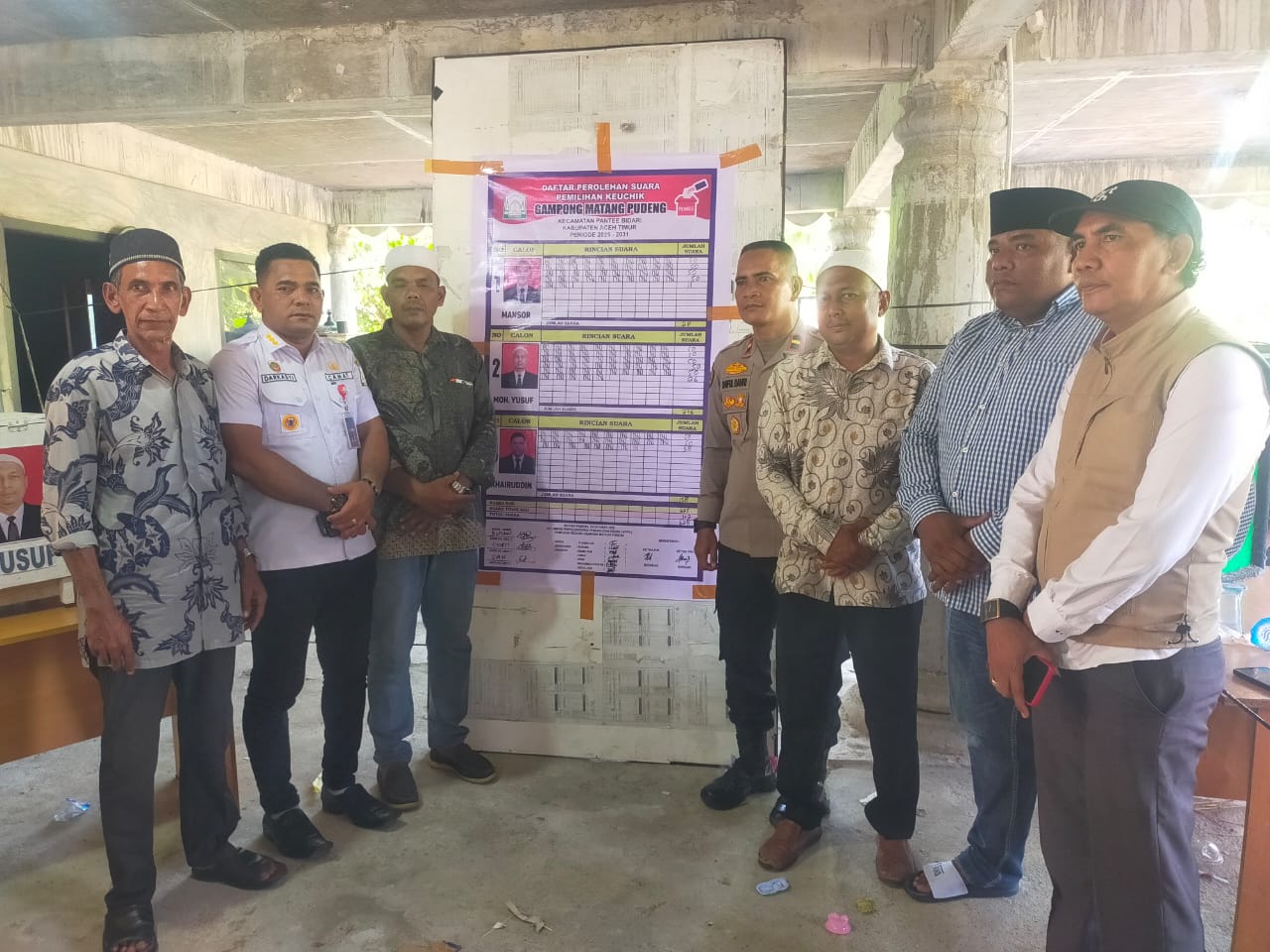 Kapolsek Pantee bidari Ipda Saiful Bahri SE, hadir langsung dalam pelaksanaan pemilihan Keuchik Gampong Matang Pudeng, dalam sambutannya berpesan mohon saling koordinasi untuk menjaga Kamtibmas dan jika ada permasalahan saya bisa di telepon kapan saja.