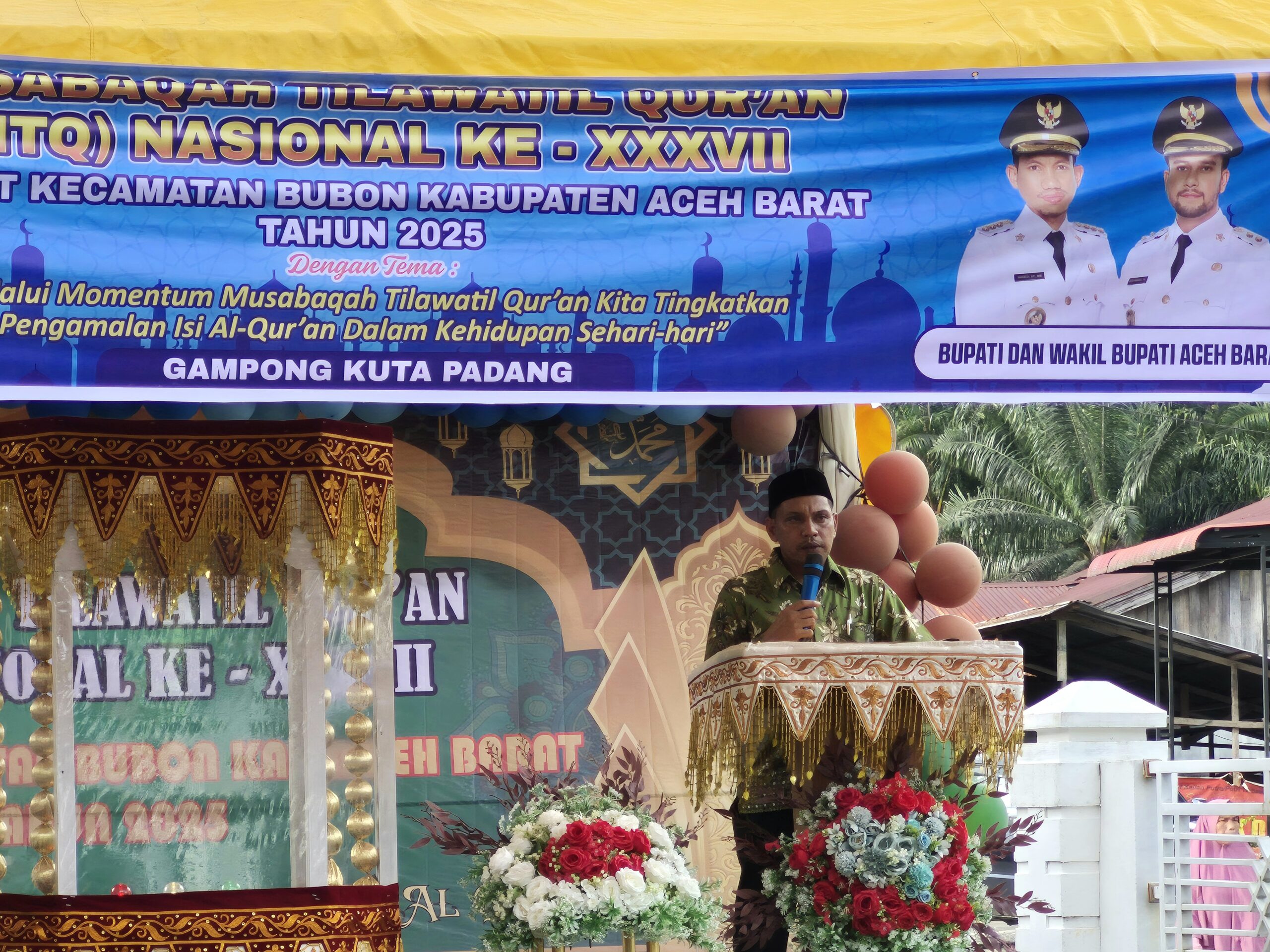Meulaboh – Musabaqah Tilawatil Qur’an (MTQ) Nasional ke-XXXVII tahun 2025 tinggkat Kecamatan Bubon Kabupaten Aceh Barat Resmi diselenggarakan bertempat di halaman mesjid Nurul Islam, Gampong Kuta Padang Kecamatan setempat, Jum’at (21/02/2025).