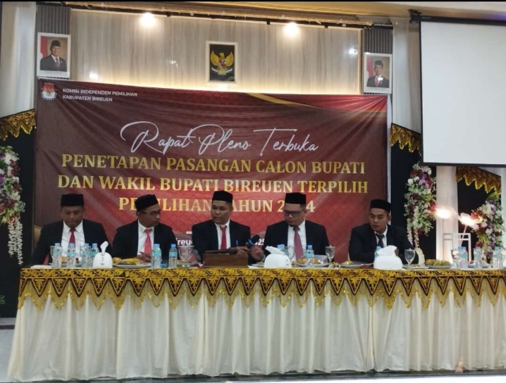 Bireuen – Komisi Independen Pemilihan (KIP) Bireuen resmi menetapkan pasangan H. Mukhlis, S.T., dan H. Ir. Razuardi, M.T. sebagai Bupati dan Wakil Bupati Bireuen terpilih dalam Pemilihan Kepala Daerah (Pilkada) 2024. Penetapan ini dilakukan dalam rapat pleno terbuka yang berlangsung di Aula Bireuen Jaya, Kecamatan Kota Juang, pada Kamis malam (6/2).