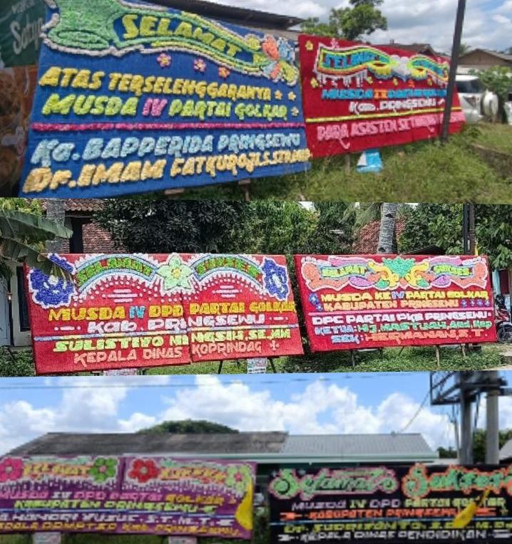 Agenda memilih ketua Partai yang akan menahkodai Golkar Pringsewu lima tahun ke depan dipenuhi oleh karangan bunga para Kepala Dinas di Kabupaten Pringsewu.