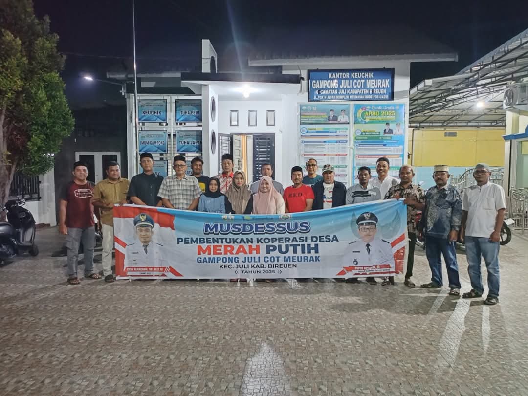 Bireuen, Aceh – 31 Mei 2025, malam ini telah dilaksanakan Musyawarah Lanjutan pasca-Musyawarah Desa Khusus (Musdessus), yang menetapkan Susunan Pengurus dan Pengawas Koperasi Merah Putih Gampong Juli Cot Meurak. Kegiatan berlangsung di Kantor Keuchik Juli Cot Meurak dengan suasana yang penuh semangat dan kebersamaan.