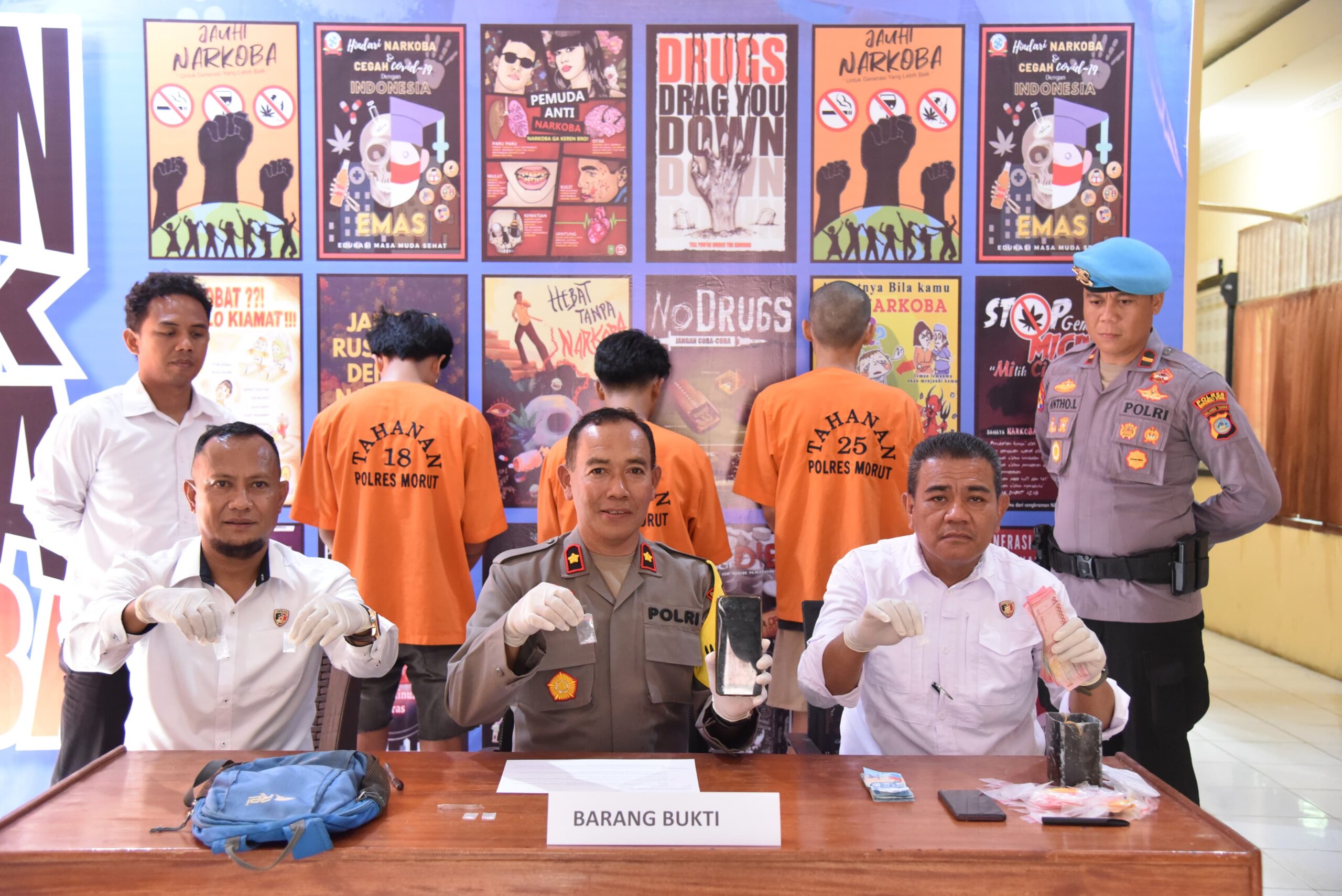 Kapolres Morowali Utara yang diwakili oleh Wakapolres Morowali Utara Kompol Suriadi S.H., M.M dan didampingi oleh Kasatresnarkoba Iptu Alfrets Fredrik Sumaa Gagola S.Sos, KBO Satresnarkoba dan Kasipropam Polres Morowali Utara membeberkan hasil kerja keras timnya dalam mengungkap Penyakit Masyarakat tersebut di Ruang Satresnarkoba Polres Morowali Utara. Senin (11/11/2024).