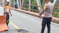 Jembatan Rusak, Satlantas Polres Lampung Utara Imbau Pengguna Jalan Berhati-hati