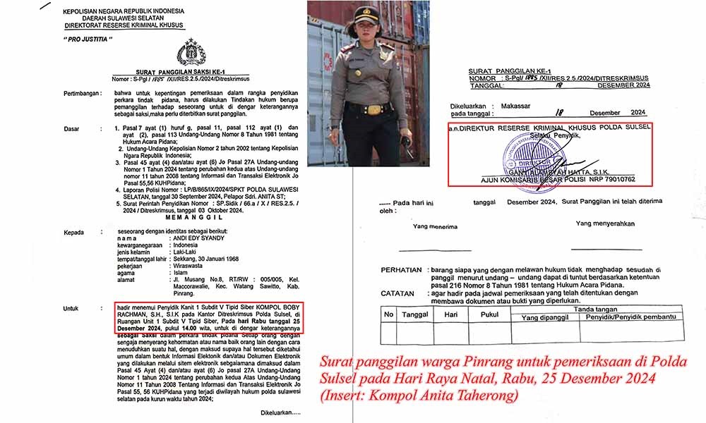 Bagaimana tidak, hari ini, Selasa, 24 Desember 2024, seorang warga di Pinrang bernama Andi Edi Sandy mendapatkan surat panggilan untuk pemeriksaan di Polda Sulawesi Selatan pada esok hari, Rabu, 25 Desember 2024, adalah tanggal merah, hari libur, dan merupakan Hari Besar Umat Kristiani, yakni Hari Natal.