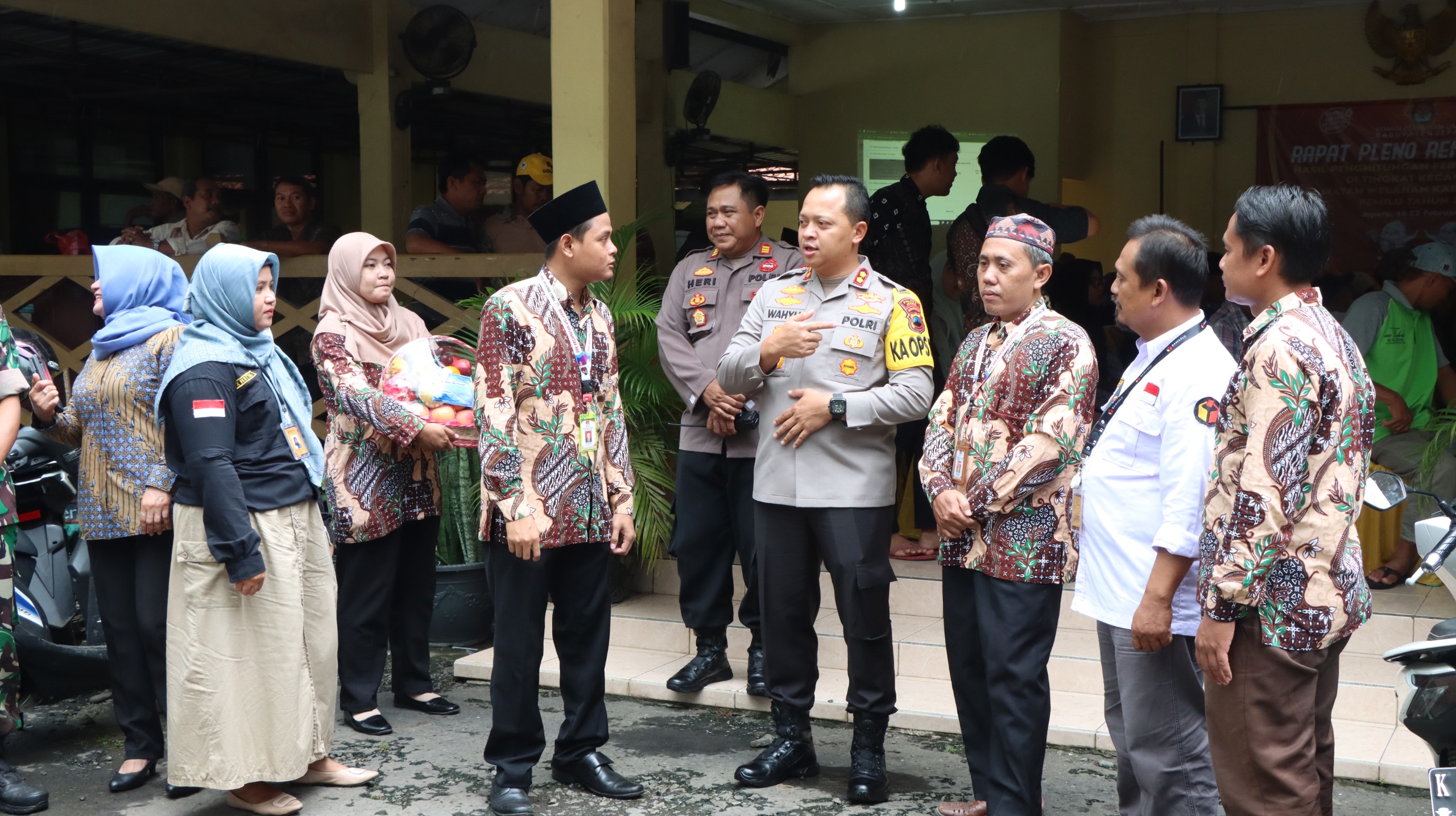 Jepara, Jawa Tengah – Pasca pemungutan dan penghitungan suara, AKBP Wahyu Nugroho Setyawan, Kapolres Jepara, melakukan pemantauan rekapitulasi penghitungan suara dan memeriksa keamanan gudang logistik Pemilu 2024 di setiap Sekretariat Panitia Pemilihan Kecamatan (PPK) di Kabupaten Jepara.