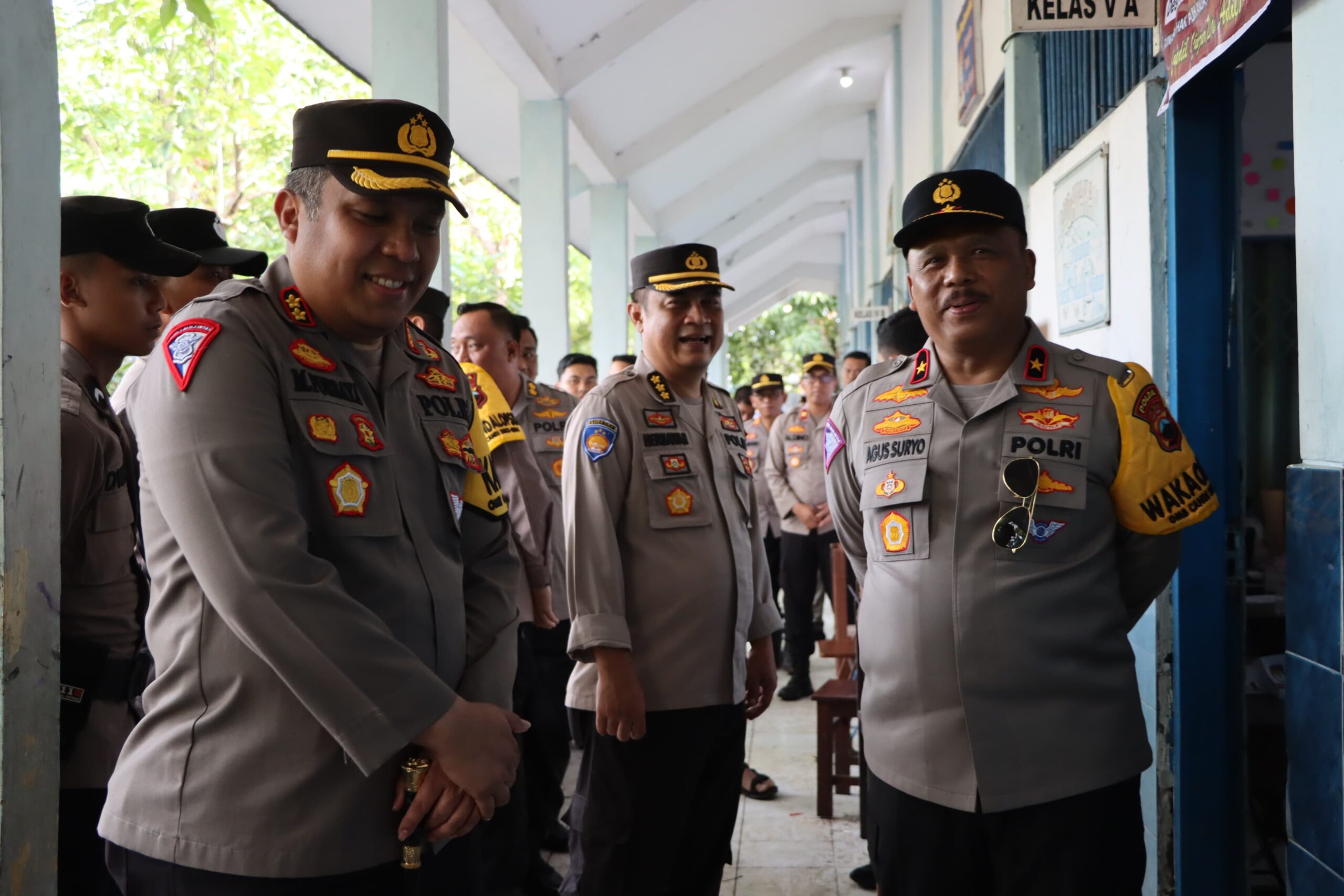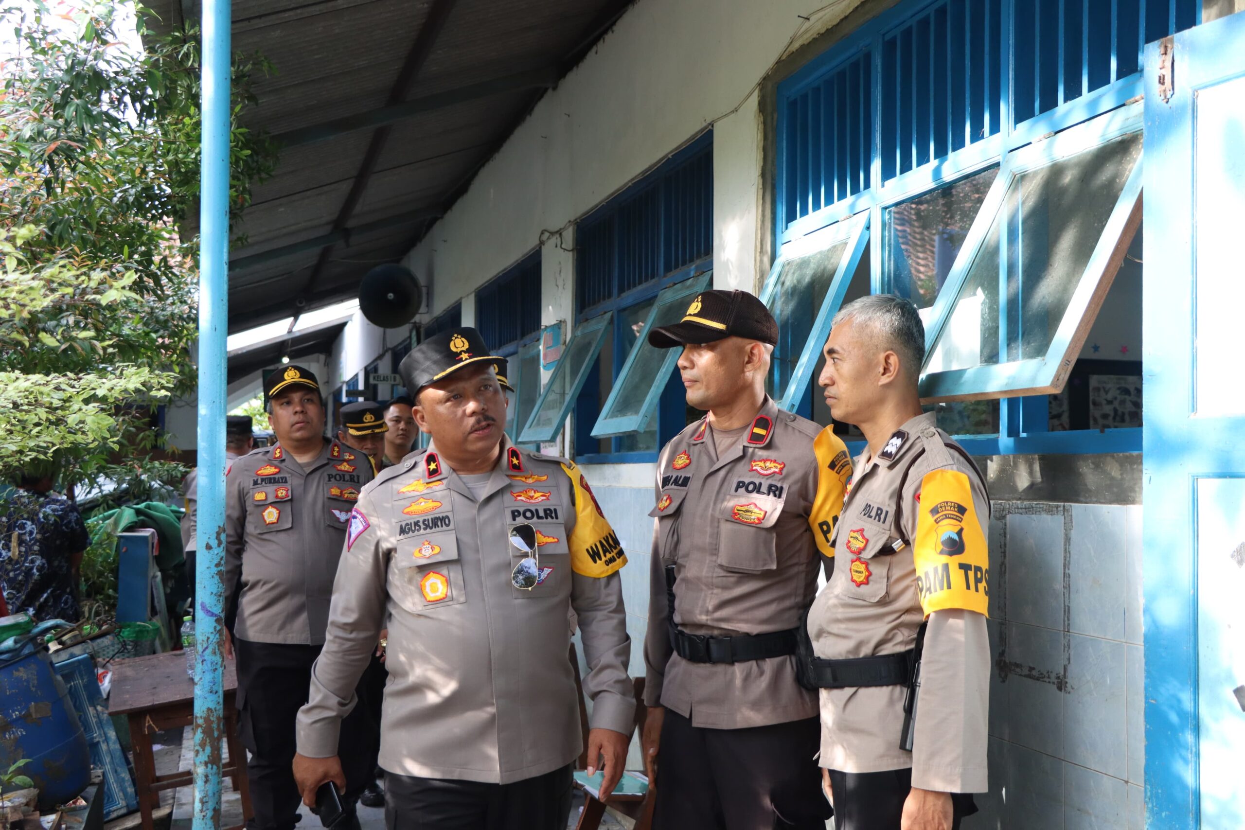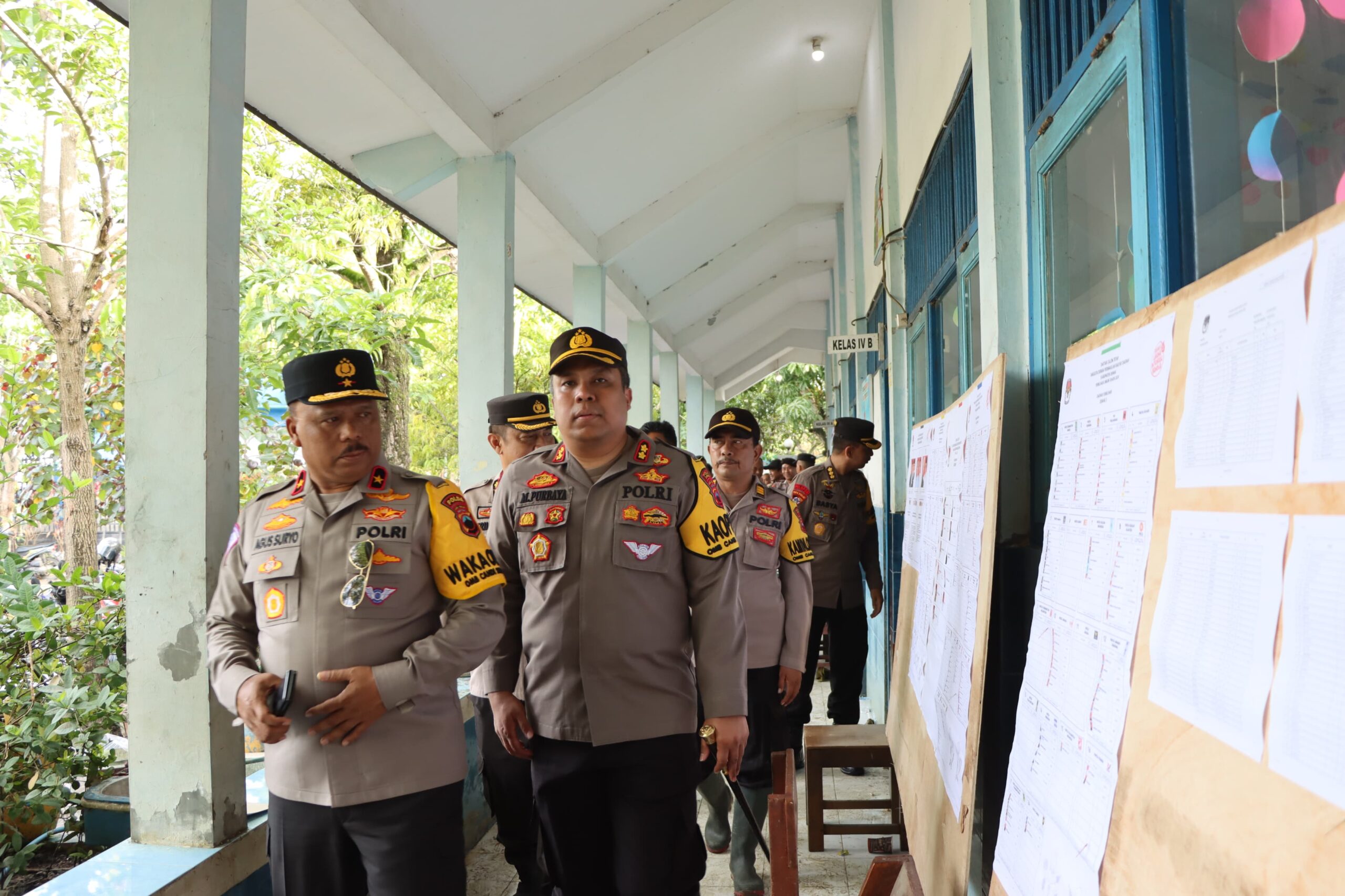 Wakapolda meninjau petugas TPS dan memastikan mereka siap memberikan pelayanan terbaik kepada masyarakat dalam pelaksanaan PSS hari ini.