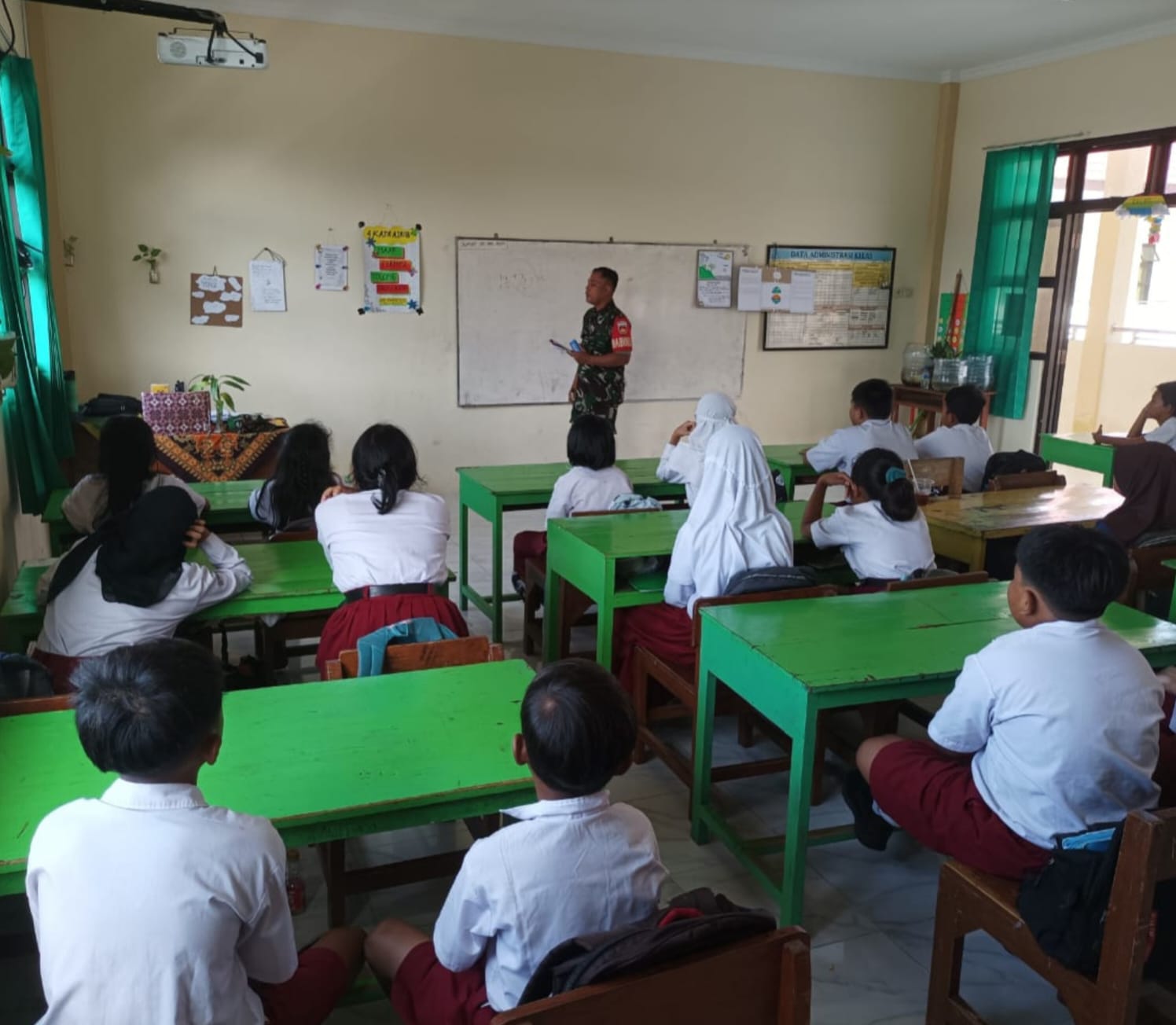 SURAKARTA, JATENG — Guna meningkatkan minat generasi muda diusia dini untuk gemar belajar matematika, Serda Susilo utomo Babinsa Koramil 05/Pasar Kliwon,Kodim 0735/Surakarta memberikan Pengajaran Matematika Dasar Metode Gasing (Gampang, Asyik dan Menyenangkan) yang diadakan di SDN Mojo jl.kyai mojo RT.02/06, Semanggi,kecamatan Pasar Kliwon Senin(13/01/2025).