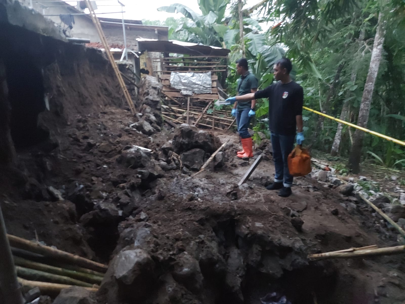 Saat kejadian, korban bersama dua temannya membuat pondasi beton untuk menahan longsoran tanah di belakang rumah Saedi. Namun, hujan deras beberapa hari belakangan membuat tanah tebing gembur dan longsor.