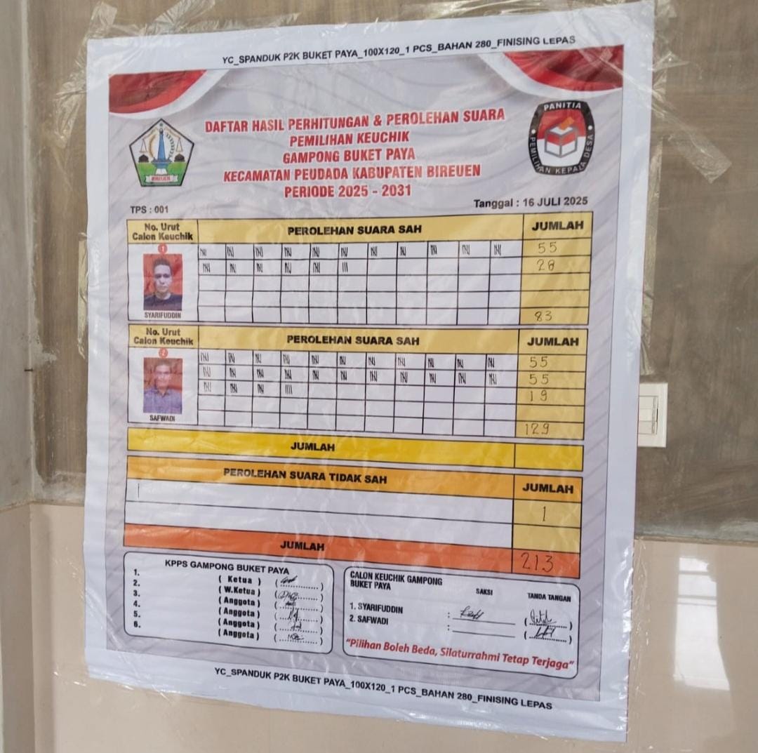 Pemilihan ini menjadi bukti nyata bahwa masyarakat Buket Paya mampu menjaga demokrasi dengan damai, tertib, dan bermartabat. Harapan baru pun kini bertumbuh untuk membangun gampong yang lebih sejahtera di bawah kepemimpinan Safwadi.