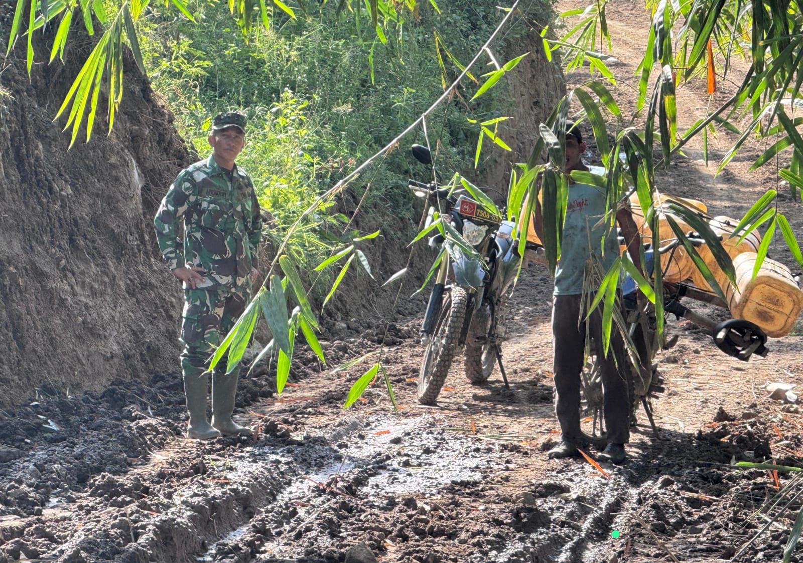 Tanpa ragu, personel TNI itu langsung membantu mendorong kendaraan yang terjebak dalam lumpur tebal. Dengan kaki yang terendam lumpur hingga betis, ia berusaha sekuat tenaga agar motor bisa kembali melaju. Butuh tenaga ekstra, tetapi semangat gotong royong tak mengenal batas. Warga yang dibantu tampak berkali-kali mengucapkan terima kasih, matanya berbinar haru atas bantuan tak terduga yang diberikan oleh prajurit TNI.