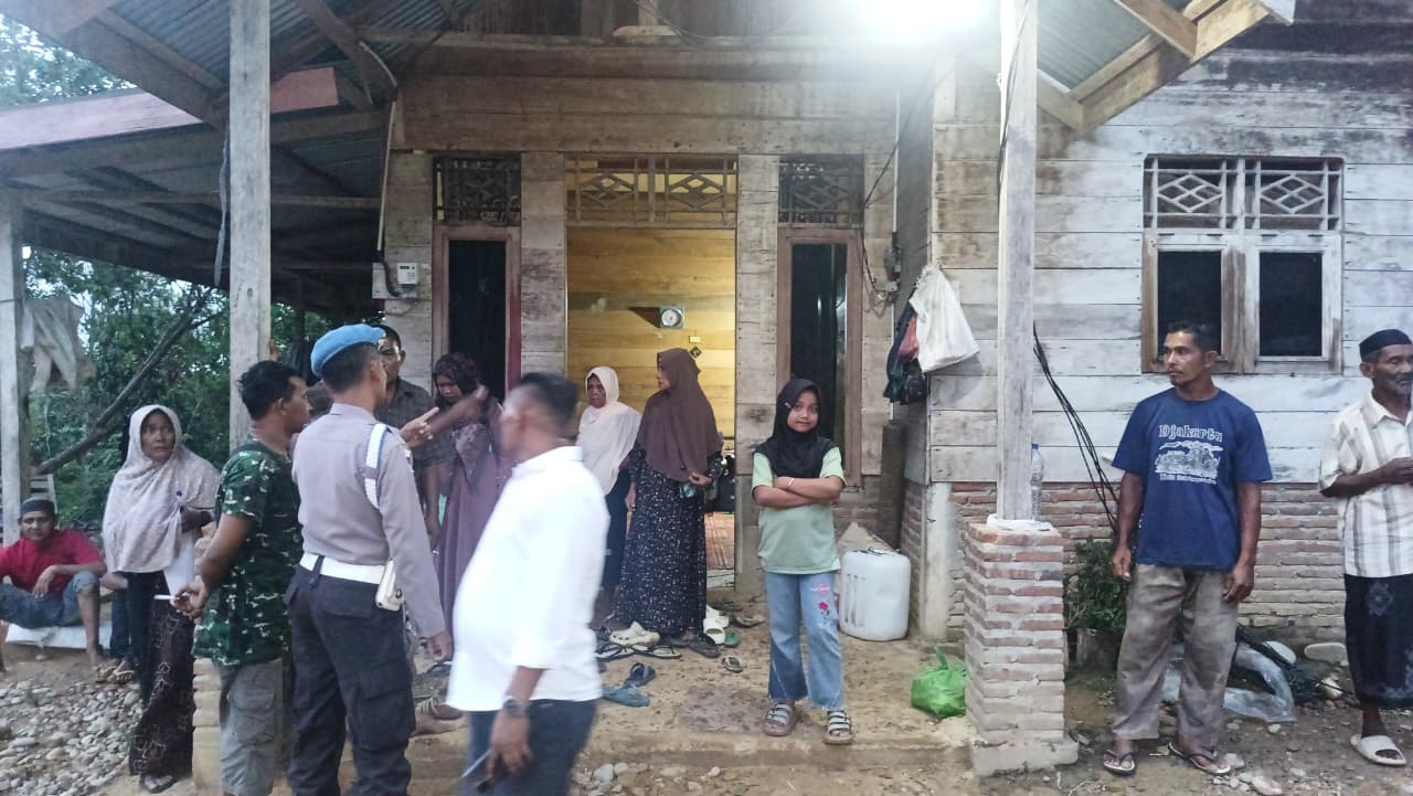 Kapolres Aceh Utara AKBP Trie Aprianto, S.H., M.H., melalui Kapolsek Langkahan Iptu Edi Munandar menjelaskan, peristiwa tersebut terjadi saat wilayah Gampong Buket Linteung dilanda hujan deras disertai petir dan angin kencang.