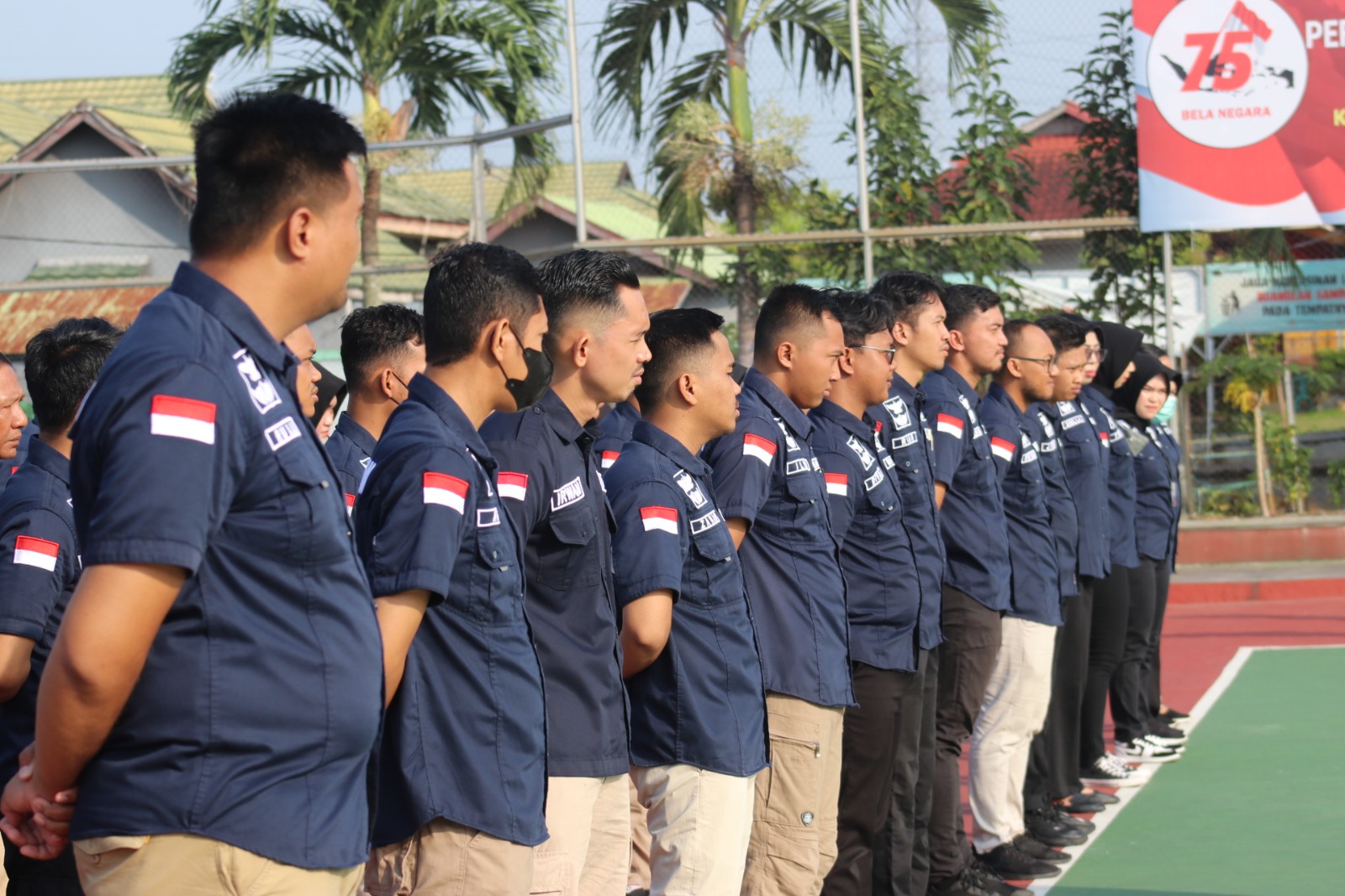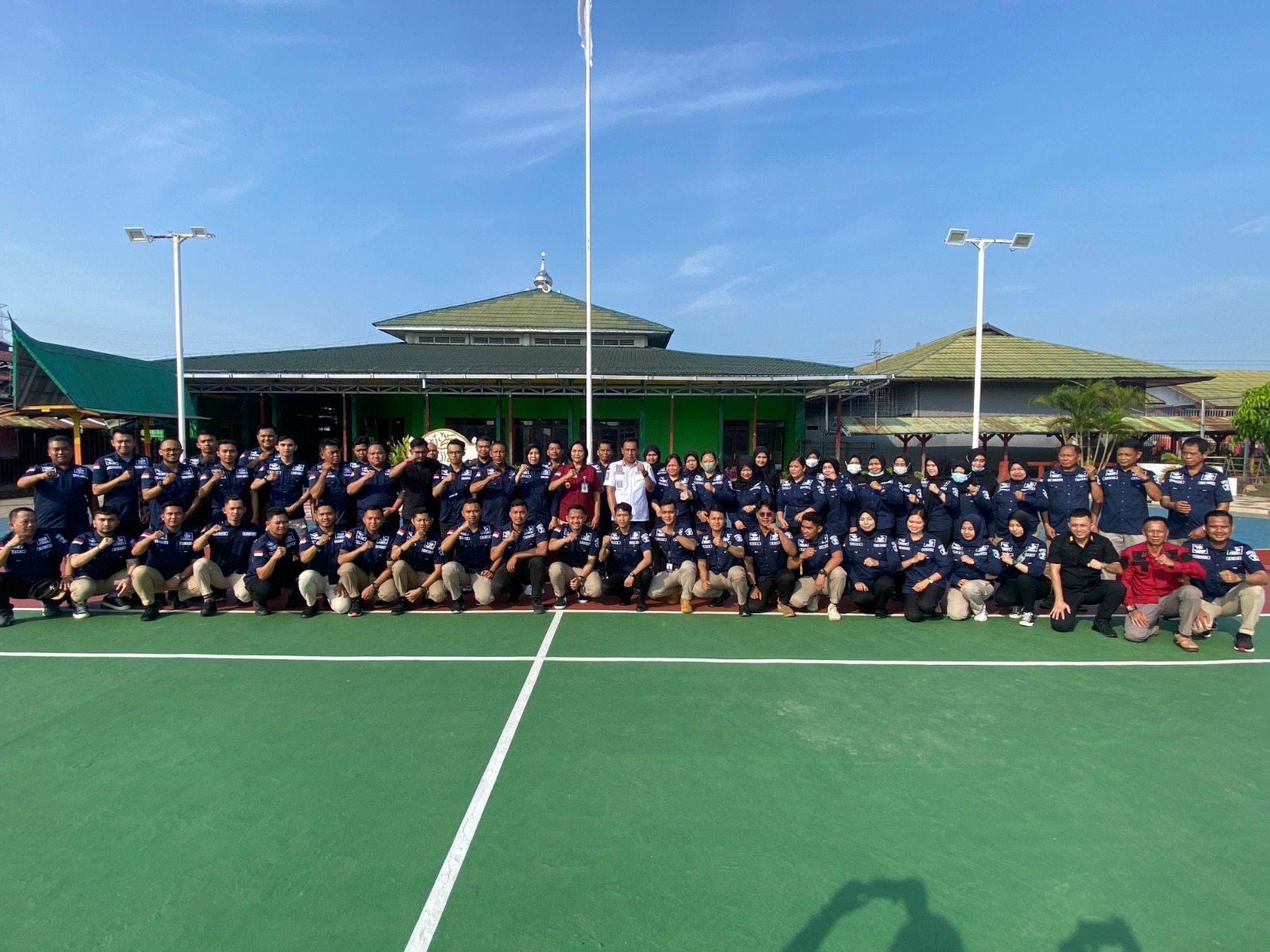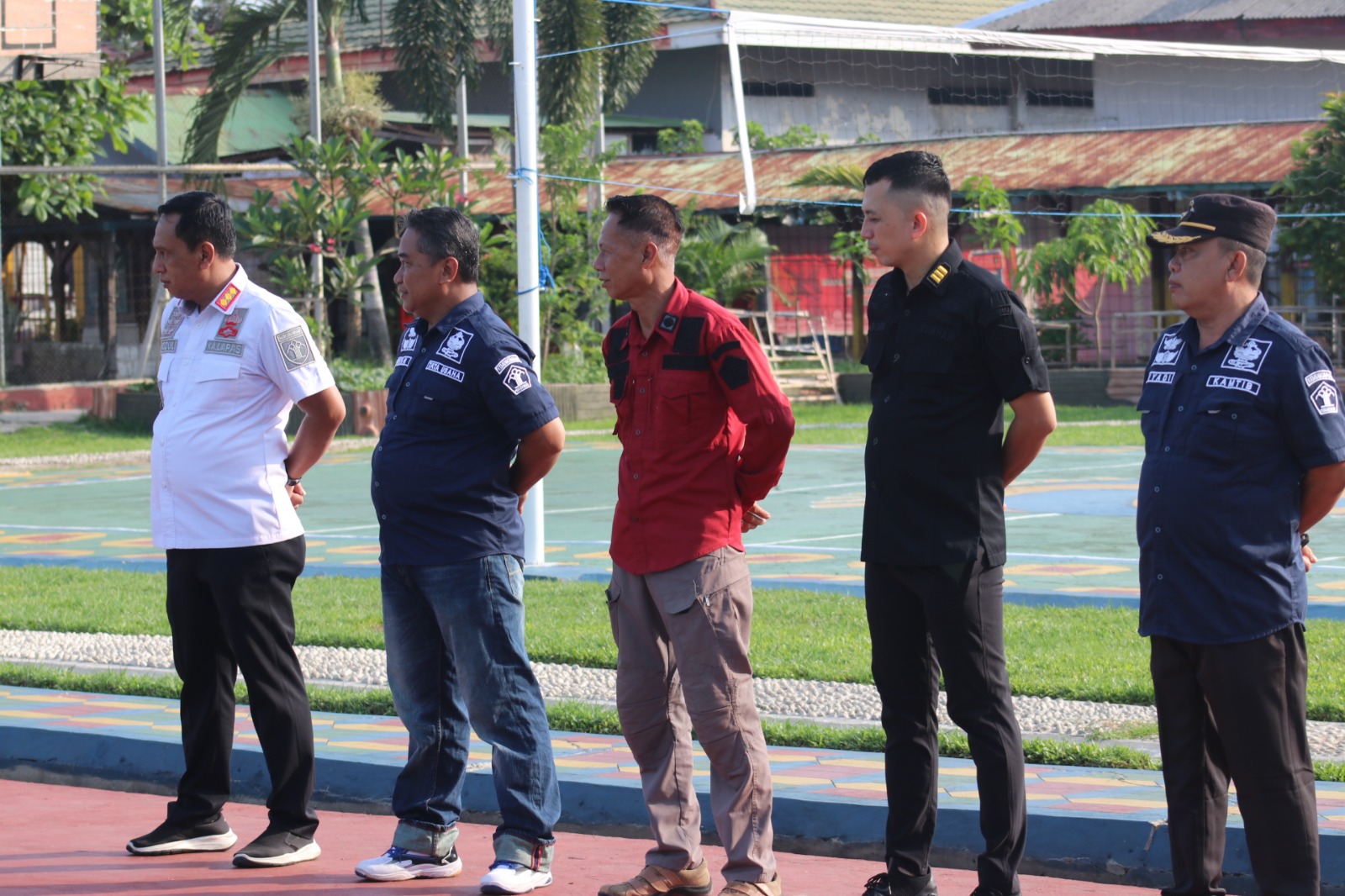 Kalapas Banjarmasin, Faozul Ansori, menyertai pejabat struktural eselon IV dan V, petugas Lapas Banjarmasin, dan warga binaan Lapas Banjarmasin di Lapangan Lapas Banjarmasin.