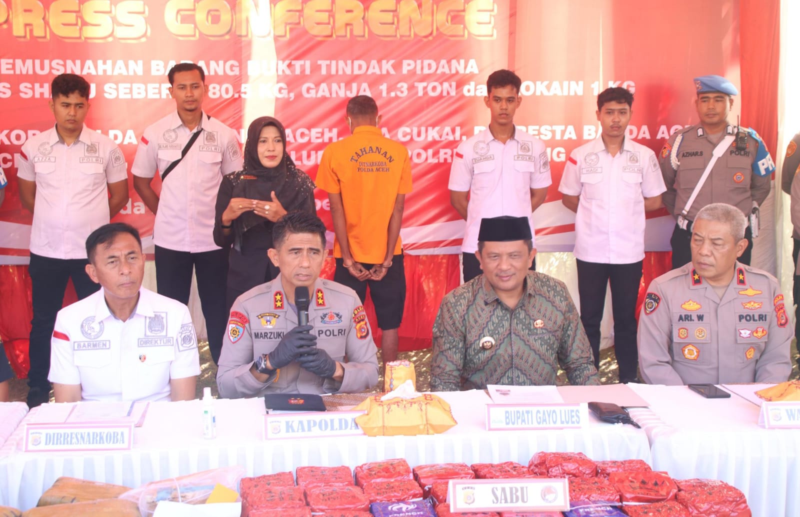 Ditresnarkoba Polda Aceh bersama Badan Narkotika Nasional Provinsi (BNNP) Aceh, Direktorat Jenderal Bea dan Cukai, Polresta Banda Aceh, Polres Aceh Timur, Polres Gayo Lues, dan Polres Sabang berhasil menggagalkan peredaran narkotika jenis sabu seberat 80,5 kilogram, ganja 1,3 ton, serta kokain 1 kilogram dalam kurun waktu tiga bulan terakhir.(Dok/humas).