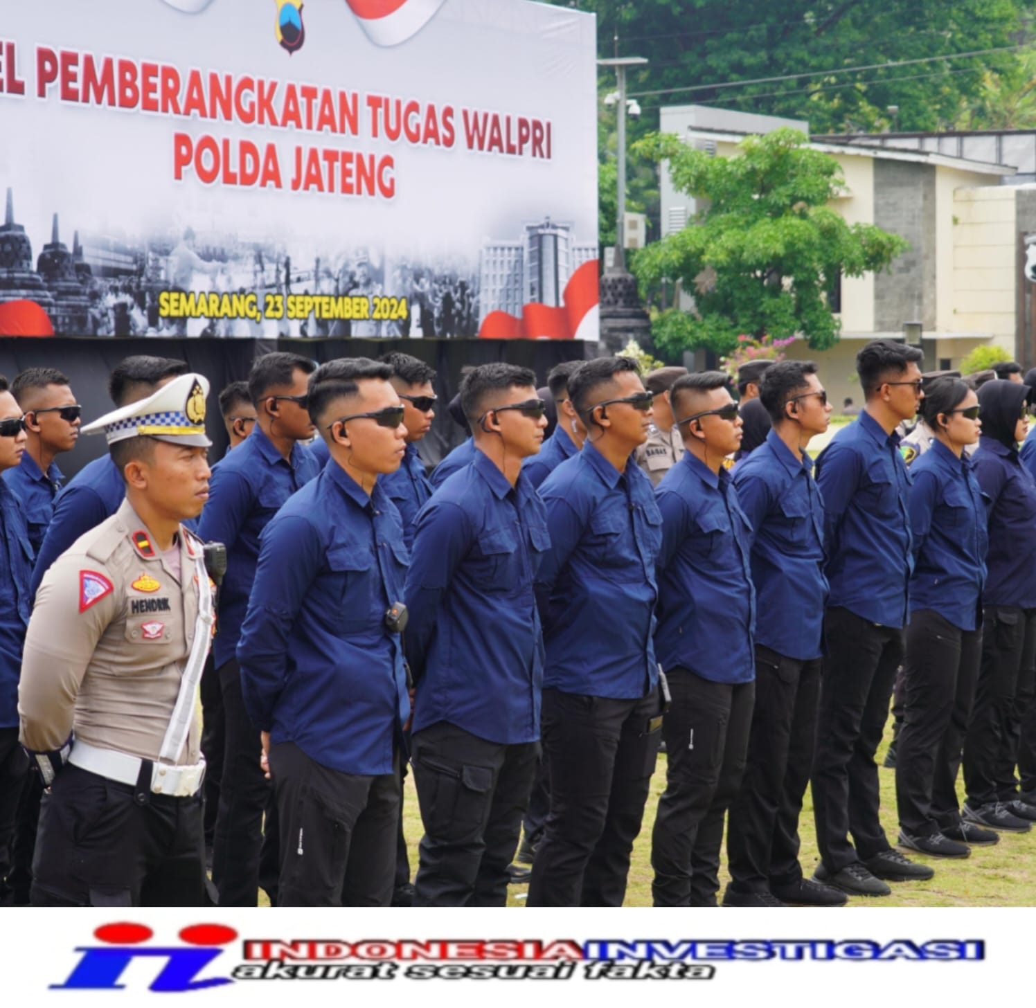 Jateng — Kota Semarang | Polda Jateng melepas keberangkatan personil Pengawal Pribadi (Walpri) yang akan bertugas mendampingi dan mengamankan para calon kepala daerah yang akan berkontestasi dalam Pilkada Serentak 2024 di Jawa Tengah. Pelepasan tersebut ditandai dengan Apel Pemberangkatan Tugas Walpri Polda Jateng yang digelar di Halaman Mapolda Jateng pada hari Senin, (23/9/2024) pagi.
