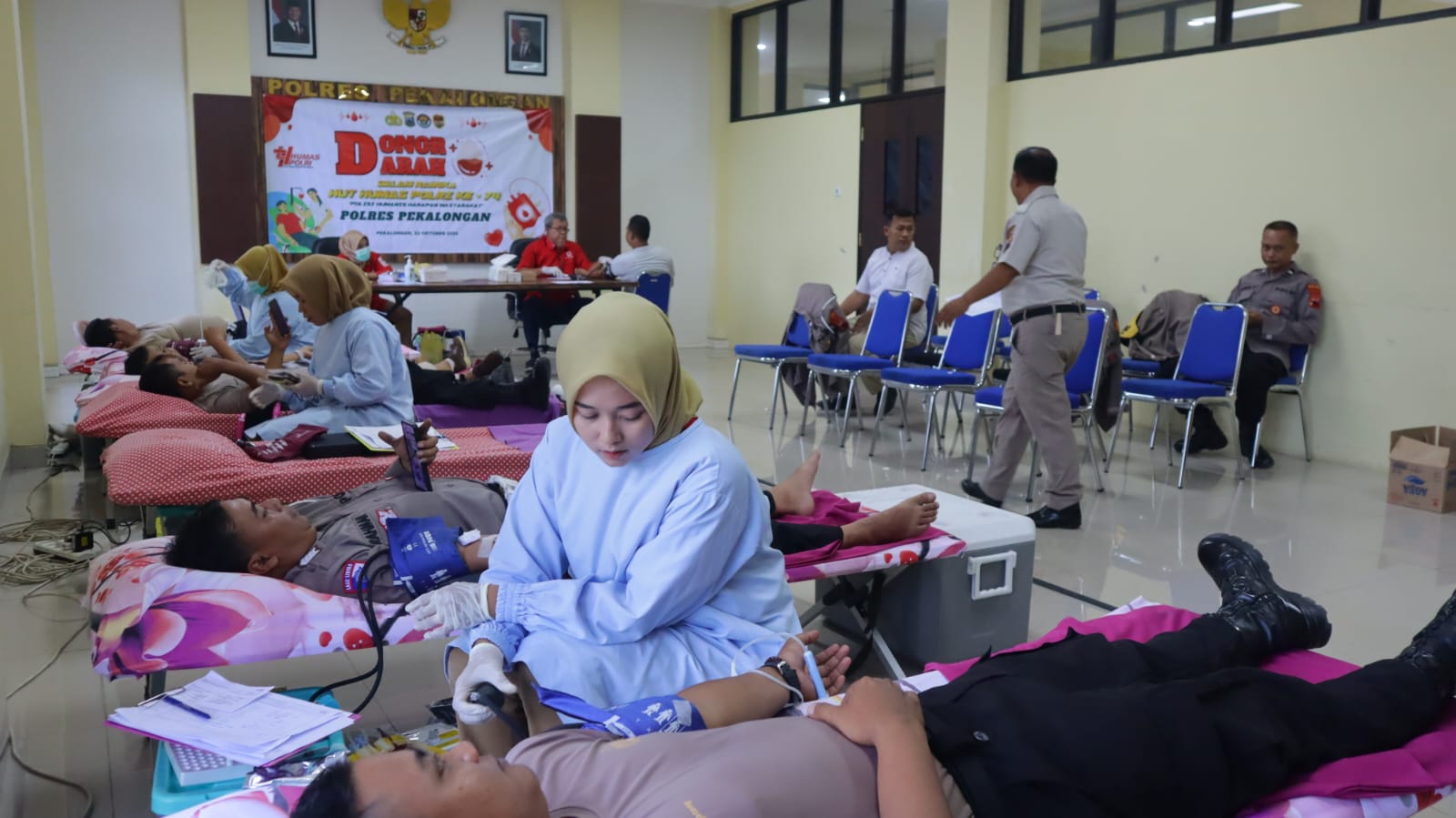 PEKALONGAN – Indonesia investigasi.com – Polres Pekalongan – Polda Jateng – Dalam rangka menyambut Hari Jadi Humas Polri ke-74 tahun 2025, Polres Pekalongan menggelar kegiatan bakti sosial donor darah serentak di aula Presisi Mapolres Pekalongan, Rabu (22/10/2025). Acara ini digelar sebagai bentuk kepedulian sosial dan kemanusiaan dengan mengusung tema “Polisi Humanis, Harapan Masyarakat.”