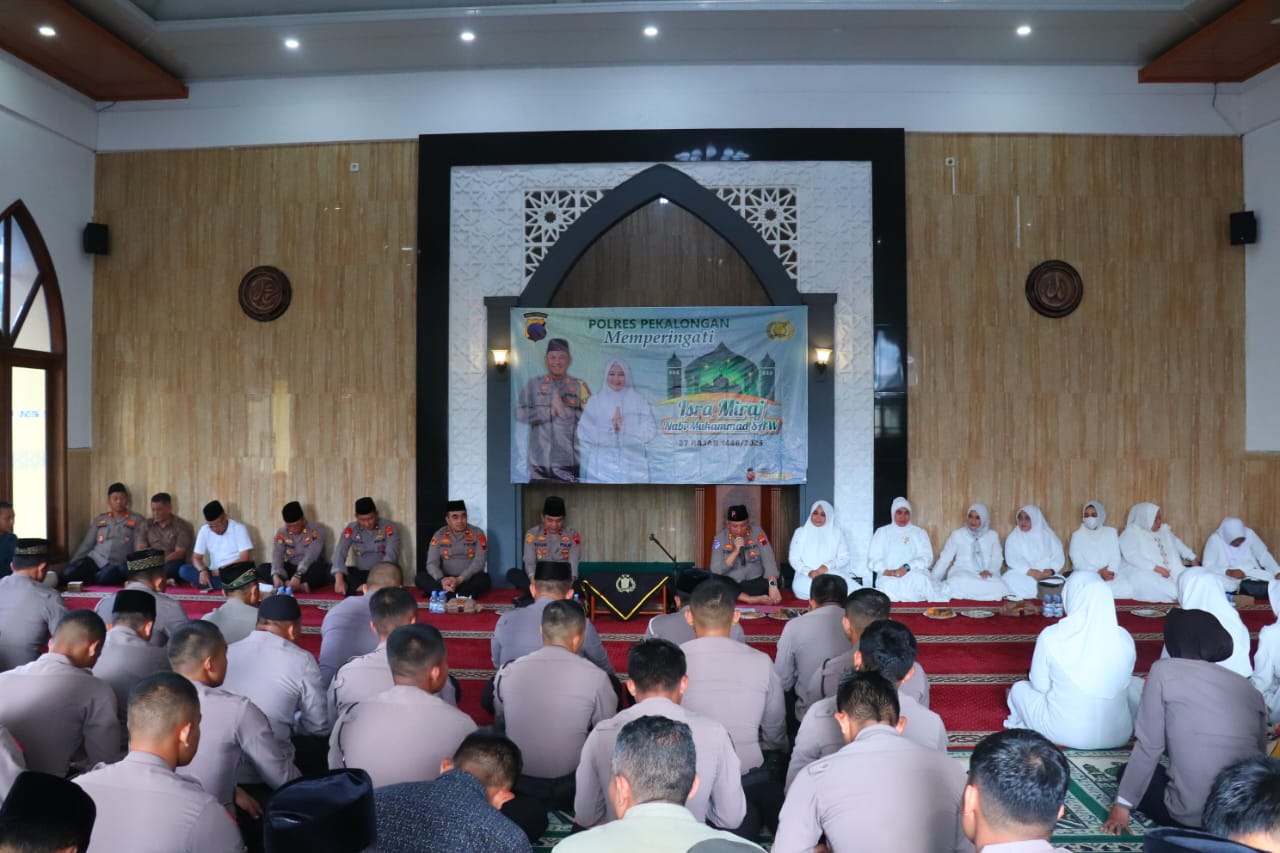 “Kegiatan ini disamping untuk meningkatkan iman dan taqwa personil Polres Pekalongan, juga bisa memetik pelajaran dari perjalanan Nabi Muhammad SAW dalam Isra; Mi’raj,” ujarnya.