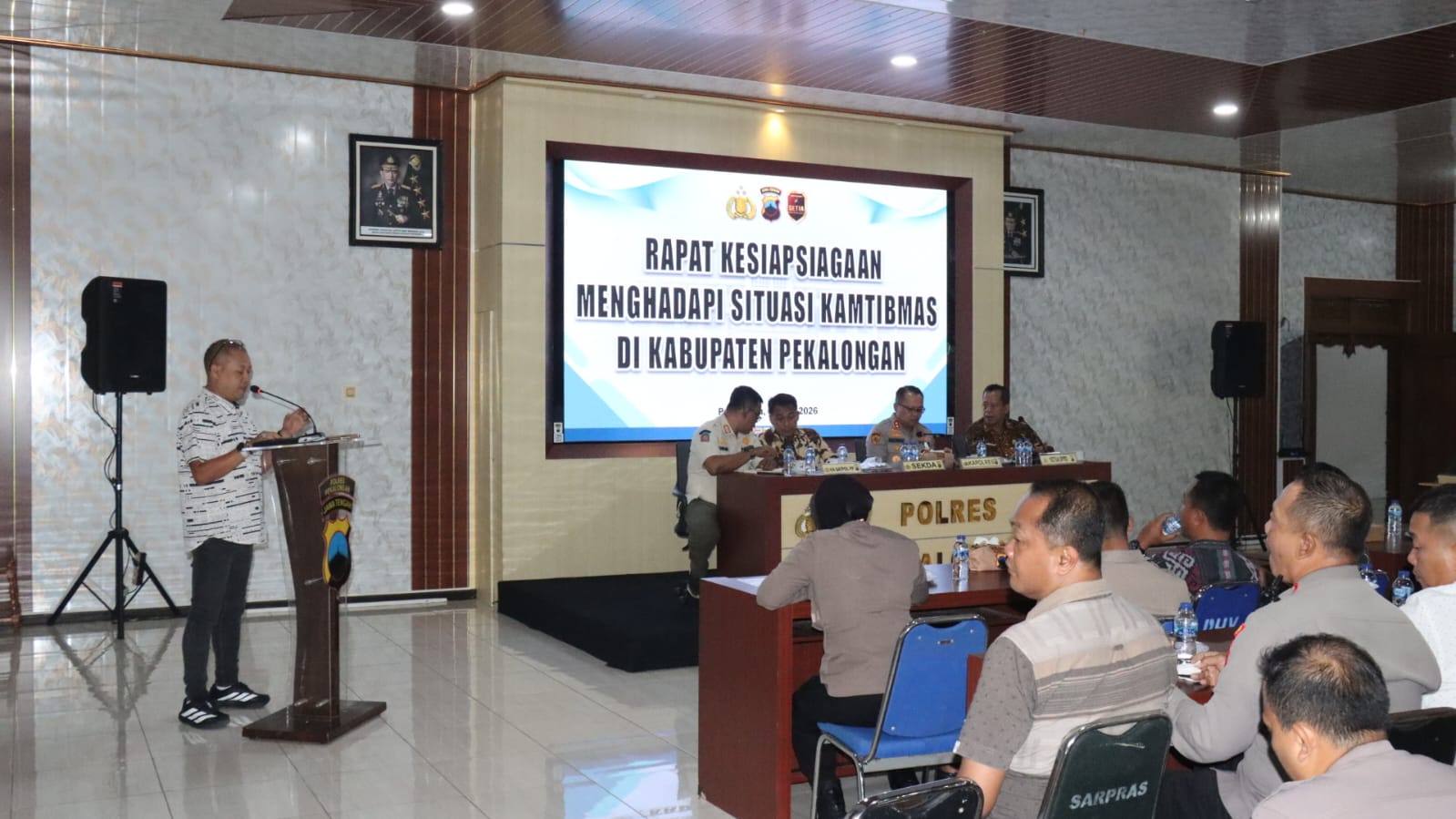PEKALONGAN – Indonesia investigasi.com – Polres Pekalongan – Polda Jateng – Dalam rangka mengantisipasi dinamika situasi kamtibmas, jajaran forkopimda Kabupaten Pekalongan menggelar rapat kesiapan menghadapi situasi kontinjensi, Kamis (2/4/2026) siang. Kegiatan yang berlangsung di Aula Polres Pekalongan ini dihadiri oleh unsur pimpinan daerah serta stakeholder terkait.