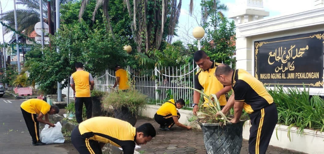PEKALONGAN KOTA – Indonesia investigasi.com – Polres Pekalongan Kota – Polda Jateng – Dalam rangka mendukung program Gerakan Indonesia Asri, Polres Pekalongan Kota melalui Polsek Pekalongan Timur melaksanakan kegiatan bakti sosial dengan membersihkan lingkungan Masjid Agung Al Jami yang berada di Jalan Wachid Hasyim, Kelurahan Kauman, Kota Pekalongan, Jumat (6/3/2026) pagi.