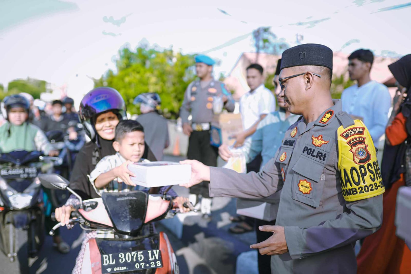 Sebanyak 300 paket takjil dibagikan kepada para pengendara dan masyarakat yang melintas di jalan nasional depan Mapolres Pidie.