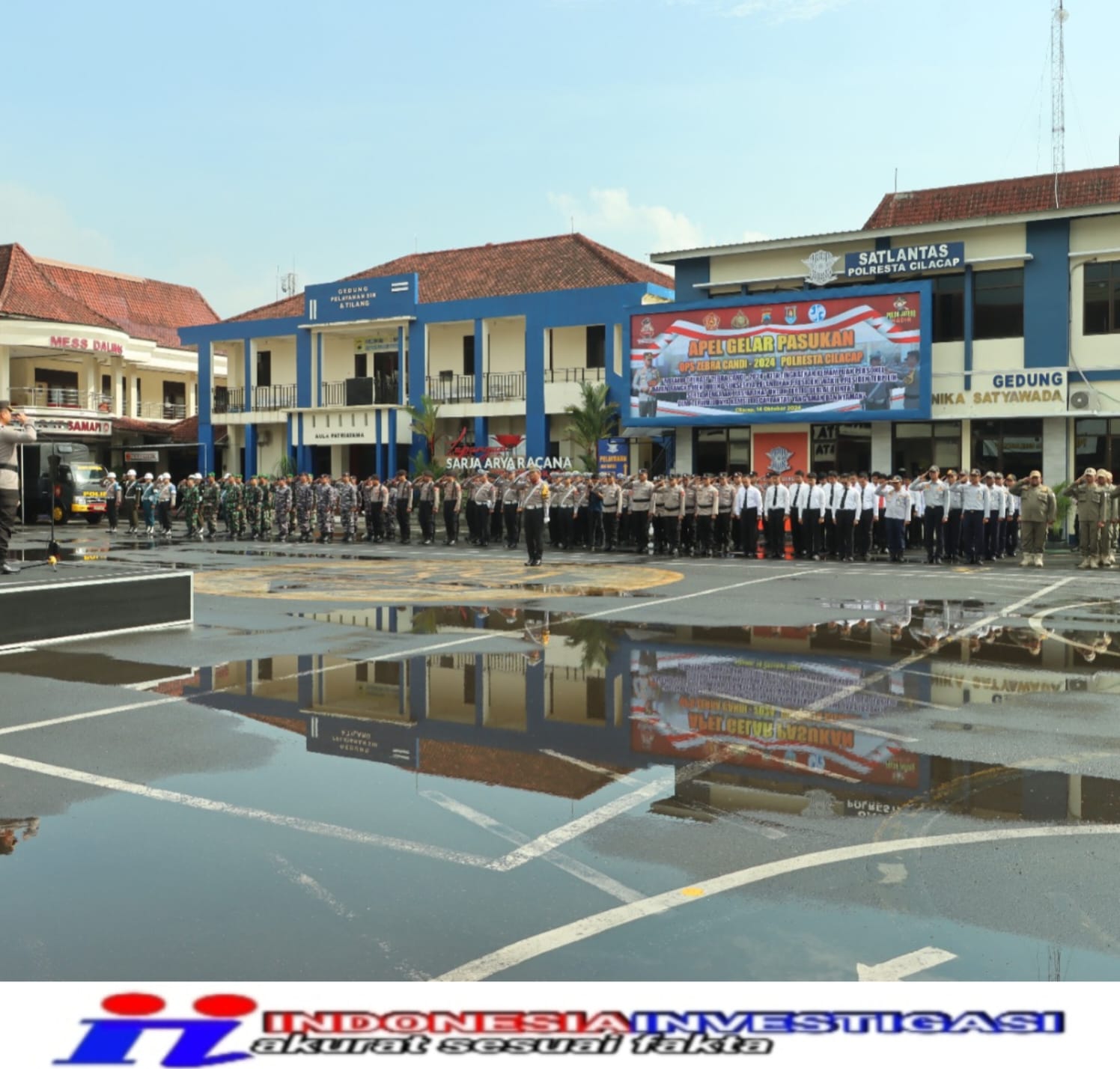 CILACAP, JATENG – Polresta Cilacap menggelar Apel Pasukan Operasi Zebra Candi 2024 di Lapangan Apel Polresta Cilacap, Senin (14/10/2024). Apel ini dipimpin langsung oleh Kapolresta Cilacap, Kombes Pol Dr. Ruruh Wicaksono, S.I.K., S.H., M.H., dan diikuti oleh personel gabungan dari TNI, Polri, Dishub, serta Satpol PP.