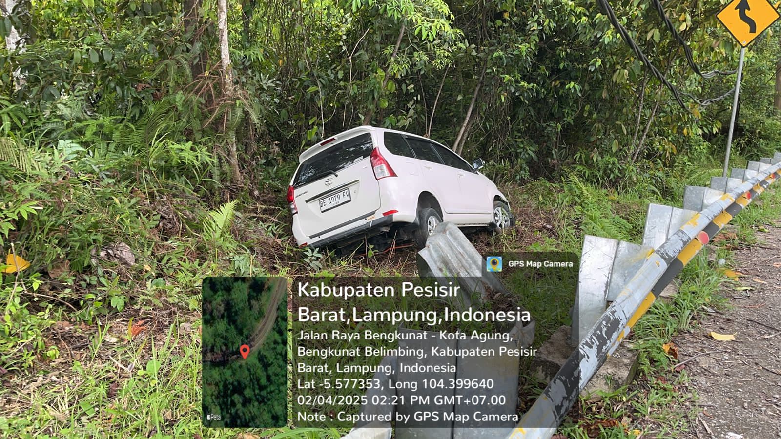 Pesisir Barat, 4 Februari 2025 – Sebuah kecelakaan tunggal terjadi di Jalan Lintas Barat, Kecamatan Bengkunat, Kabupaten Pesisir Barat, pada Selasa siang (4/2) sekitar pukul 14.00 WIB. Kendaraan roda empat Toyota Avanza BE 1979 FV, yang dikemudikan oleh Sdr. Isbet Peko, mengalami kecelakaan saat melaju dari arah Metro menuju Pugung.