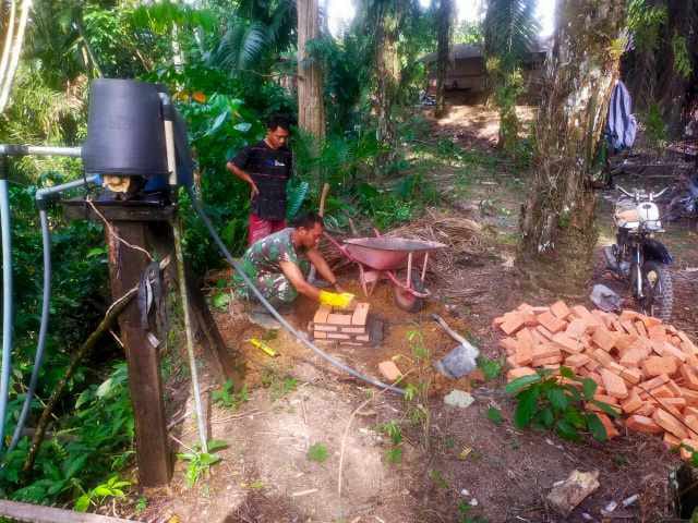 Aceh Tamiang, Aceh – Satuan Tugas (Satgas) TMMD Reguler ke 119 Kodim 0117/Atam laksanakan program instalasi air bersih berbasis pipanisasi di lokasi salah satu desa sasaran kegiatan, Desa Perkebunan Pulau Tiga Kecamatan Tamiang Hulu, Aceh Tamiang.