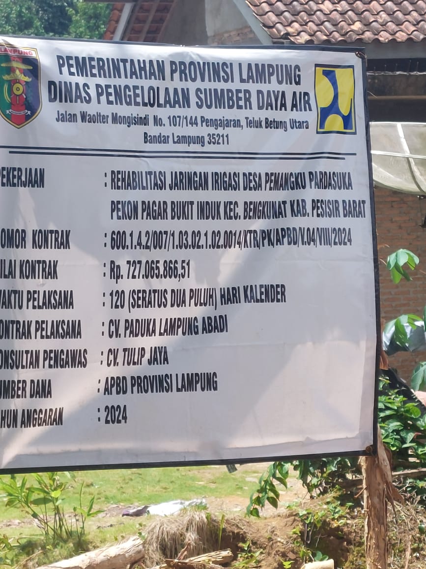 Proyek yang bernilai Rp 727.065.866,51 yang bersumber dari APBD propinsi Lampung tahun 2024 yang dikerjakan oleh CV PADUKA LAMPUNG ABADI .