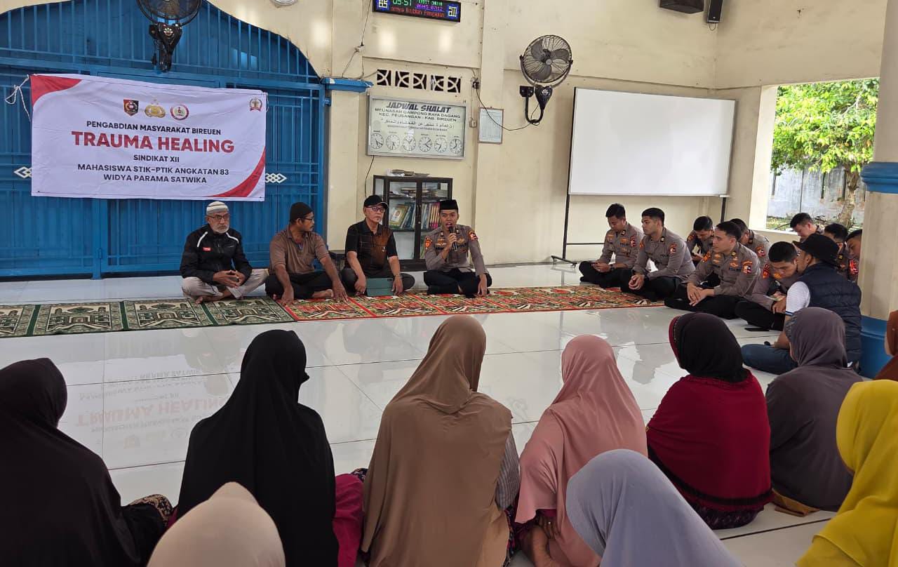BIREUEN — Di tengah upaya bangkit dari dampak banjir yang belum sepenuhnya pulih, secercah penguatan moral dan spiritual hadir untuk masyarakat Kecamatan Peusangan. Mahasiswa PTIK Lemdiklat Polri Angkatan ke-83/WPS turun langsung ke lapangan, memberikan pembinaan rohani sekaligus menyalurkan bantuan sosial bagi warga terdampak.