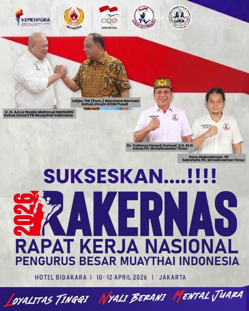 JAKARTA – Rapat Kerja Nasional (Rakernas) Muaythai Indonesia Jumat, 10 April 2026 di Hotel Bidakara, Jakarta mendorong perubahan Anggaran Dasar dan Anggaran Rumah Tangga Muaythai Indonesia.