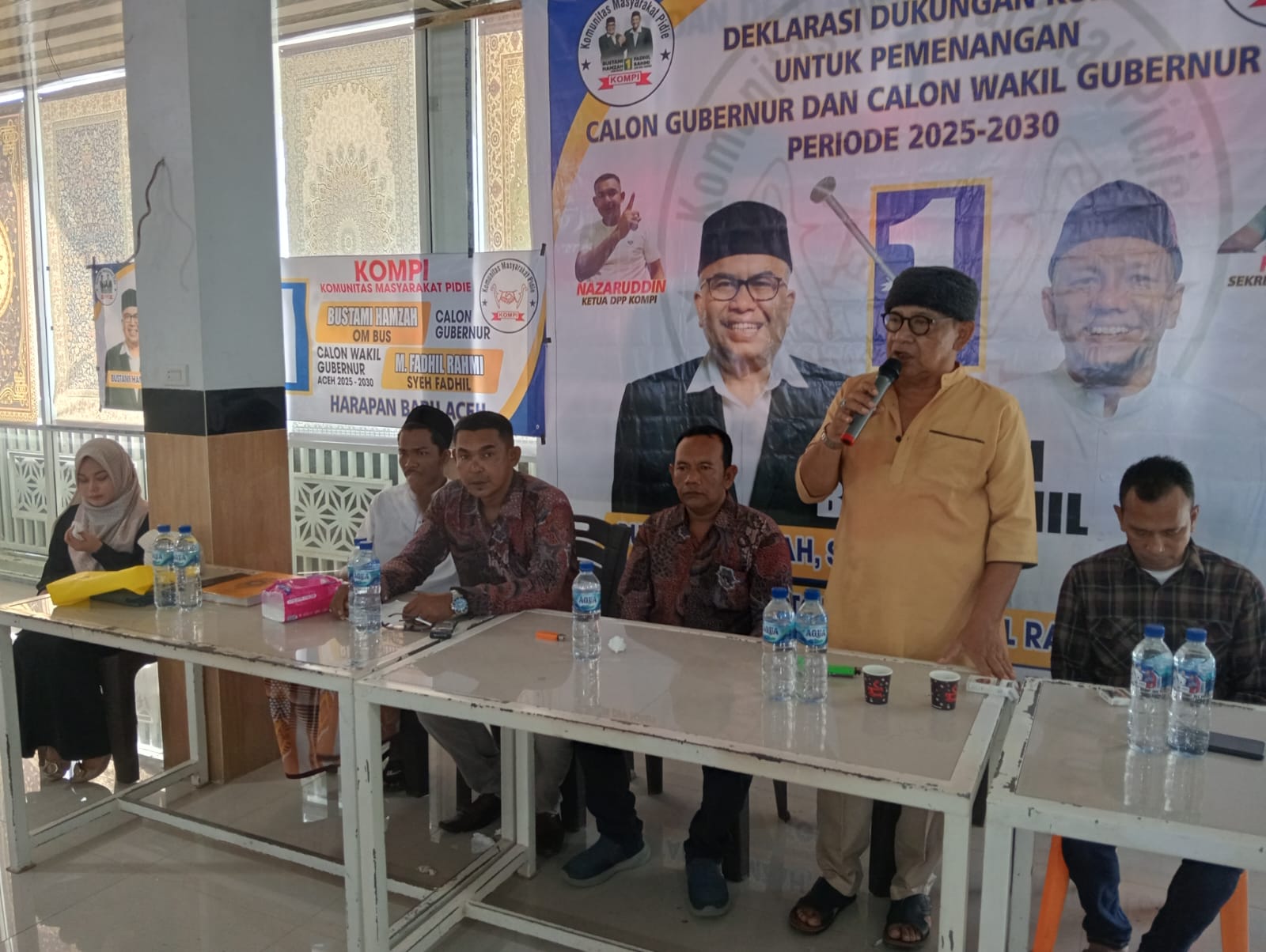 “Kami Seluruh pengurus DPP KOMPI siap memberikan dukungan penuh kepada Om bustami Hamzah dan Tgk Fadhil Rahmi, bahwa sebelumnya terlebih dahulu mempelajari dan mendalami rekaman jejak kedua calon Nomor urut 01,” kata Nazaruddin.