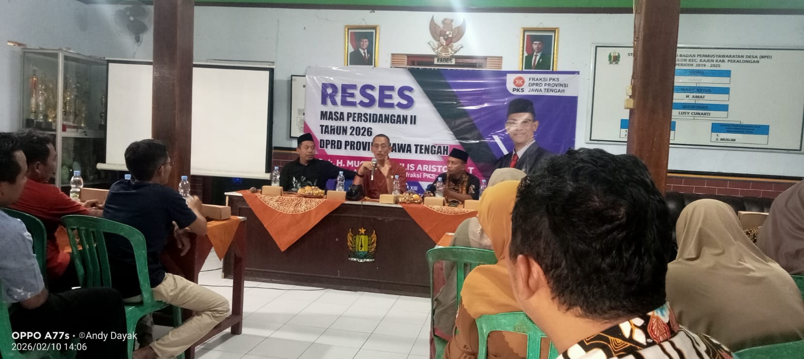 PEKALONGAN – Indonesia investigasi .com – Masa reses DPRD Provinsi Jawa Tengah (Jateng) untuk Persidangan II Tahun ini dimanfaatkan sebagai wadah dialog langsung antara wakil rakyat dan masyarakat di daerah pemilihan. Anggota Komisi D DPRD Provinsi Jateng dari Fraksi Partai Keadilan Sejahtera (PKS), BPK H. Much. Muchlis Ariston, ST, menggelar kegiatan reses di Aula Balai Desa Tanjung Kulon, Kecamatan Kajen, Kabupaten Pekalongan, pada Selasa (10/2) pukul 14.00 WIB.