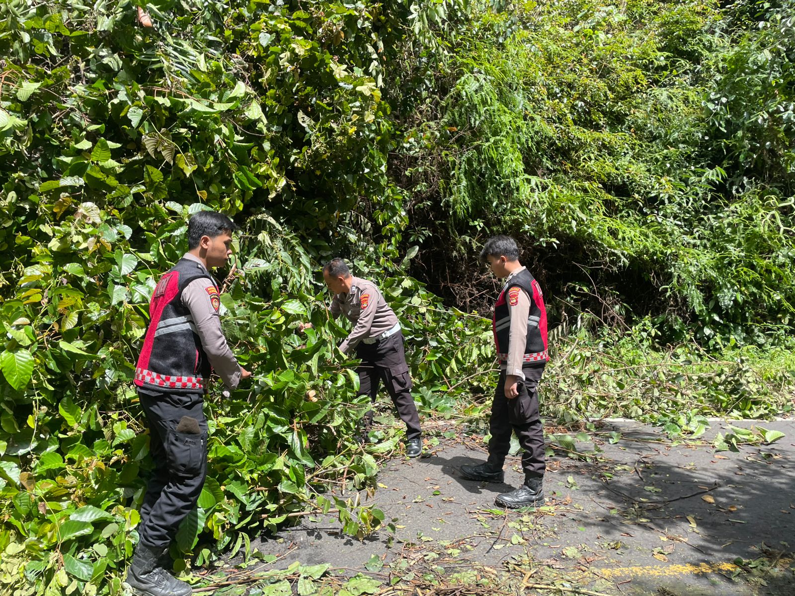 “Curah hujan yang tinggi disertai angin kencang belakangan ini kerap menimbulkan bencana alam seperti banjir, longsor, maupun pohon tumbang. Kami mengimbau masyarakat agar tetap waspada dalam menjalankan aktivitas sehari-hari, khususnya saat melintasi kawasan hutan,” jelas IPTU Kasiyono.