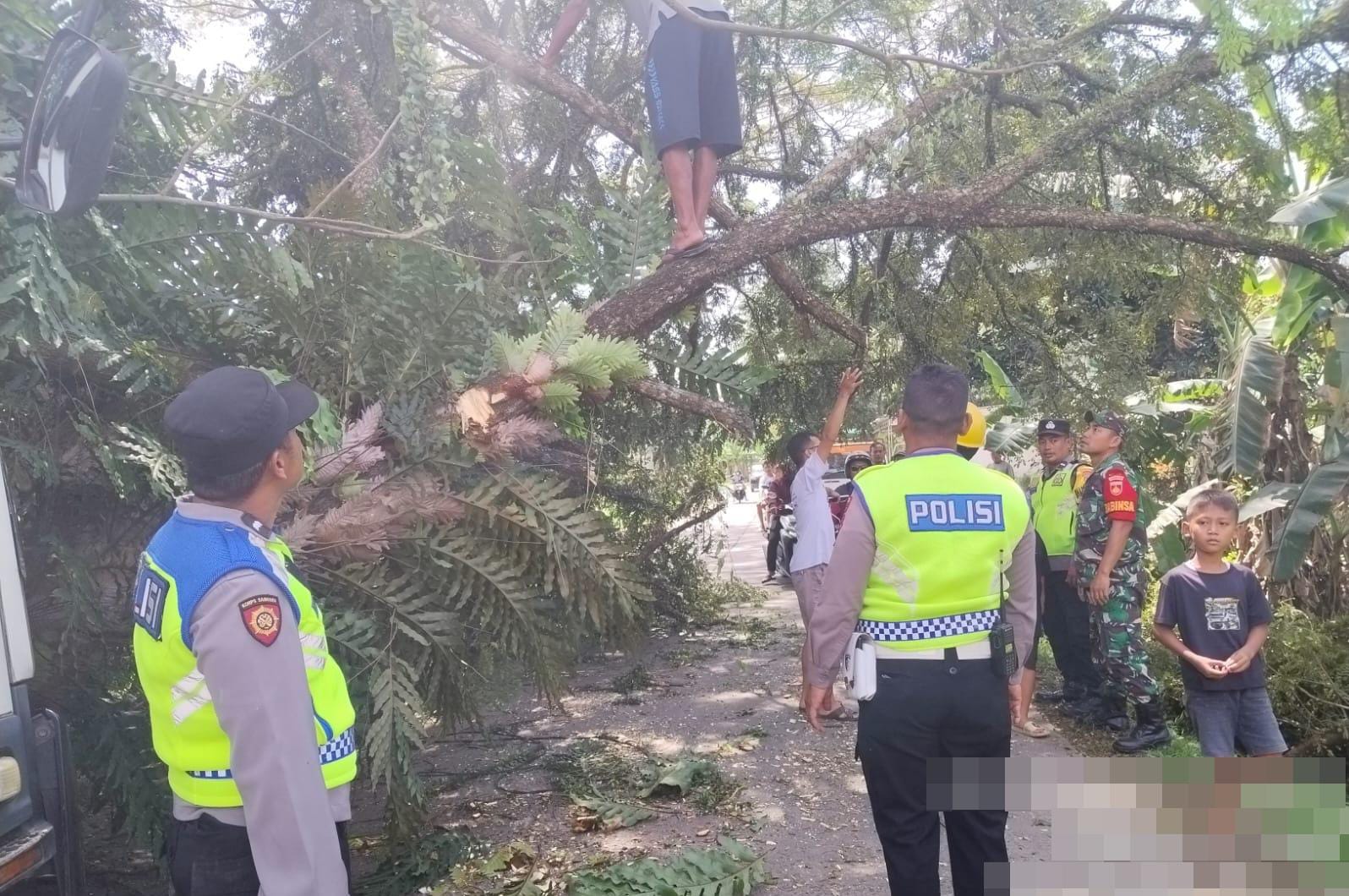 “Begitu menerima laporan, anggota langsung meluncur ke TKP di Desa Sembungjambu. Fokus utama kami adalah membuka akses jalan yang tertutup total oleh batang pohon agar aktivitas masyarakat tidak lumpuh,” ujar AKP Wastono, Sabtu (28/2/2026).