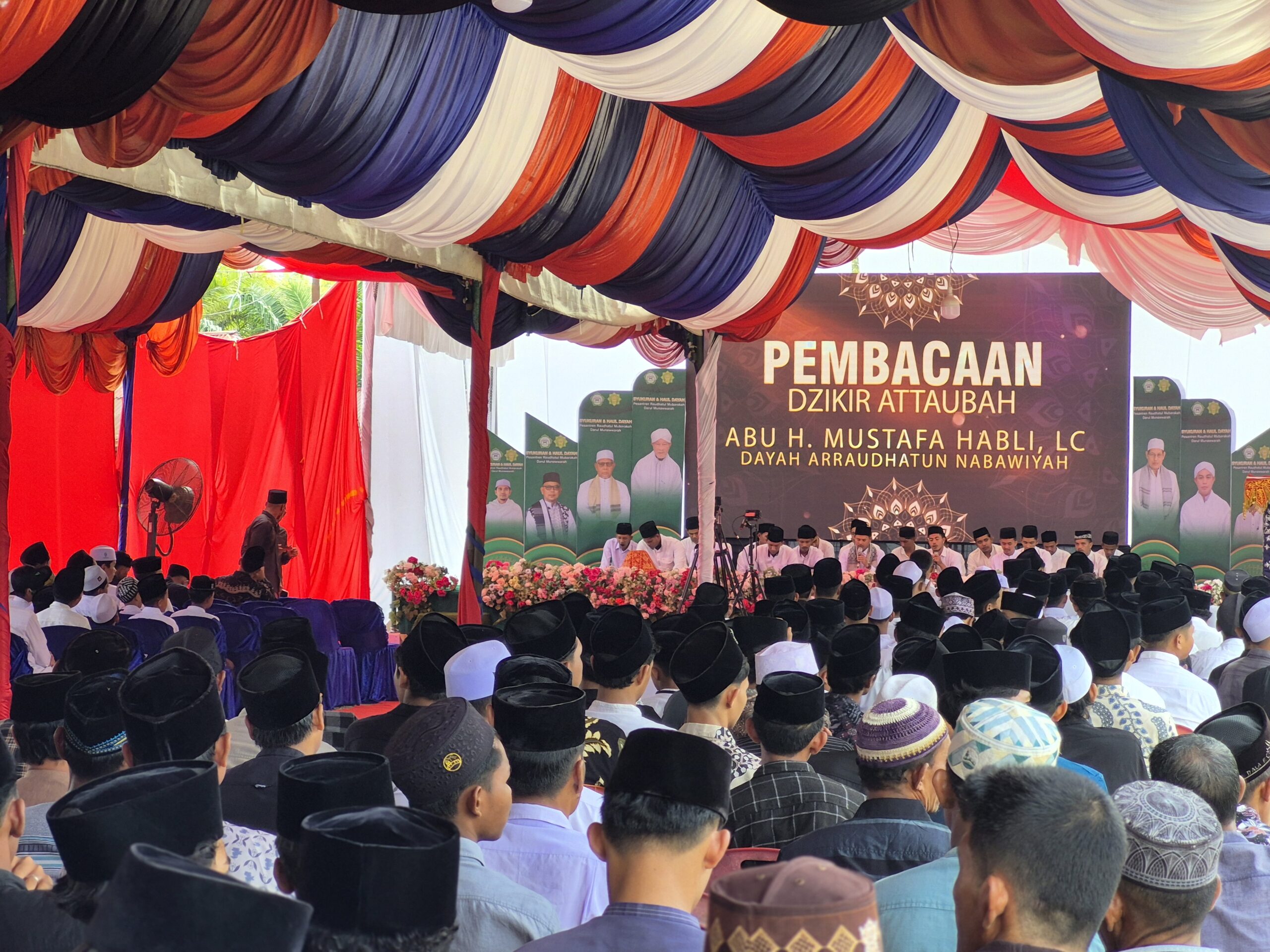 Meulaboh – Ribuan masyarakat dari berbagai kalangan memadati acara Syukuran dan Haul Dayah Raudatul Mubarokah Darul Munawarah yang ke – 9 Tahun, Kamis (13/02/2025).