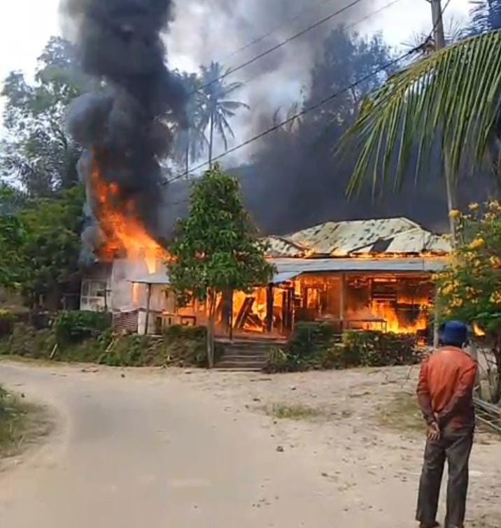 LHOKSEUMAWE – Satu Unit Rumah Semi permanen , milik Abdullah warga Desa Cot Trieng Dusun C, Kecamatan Muara Satu, pada pukul 11:30 terbakar hebat , Minggu 18 Januari 2026 .
