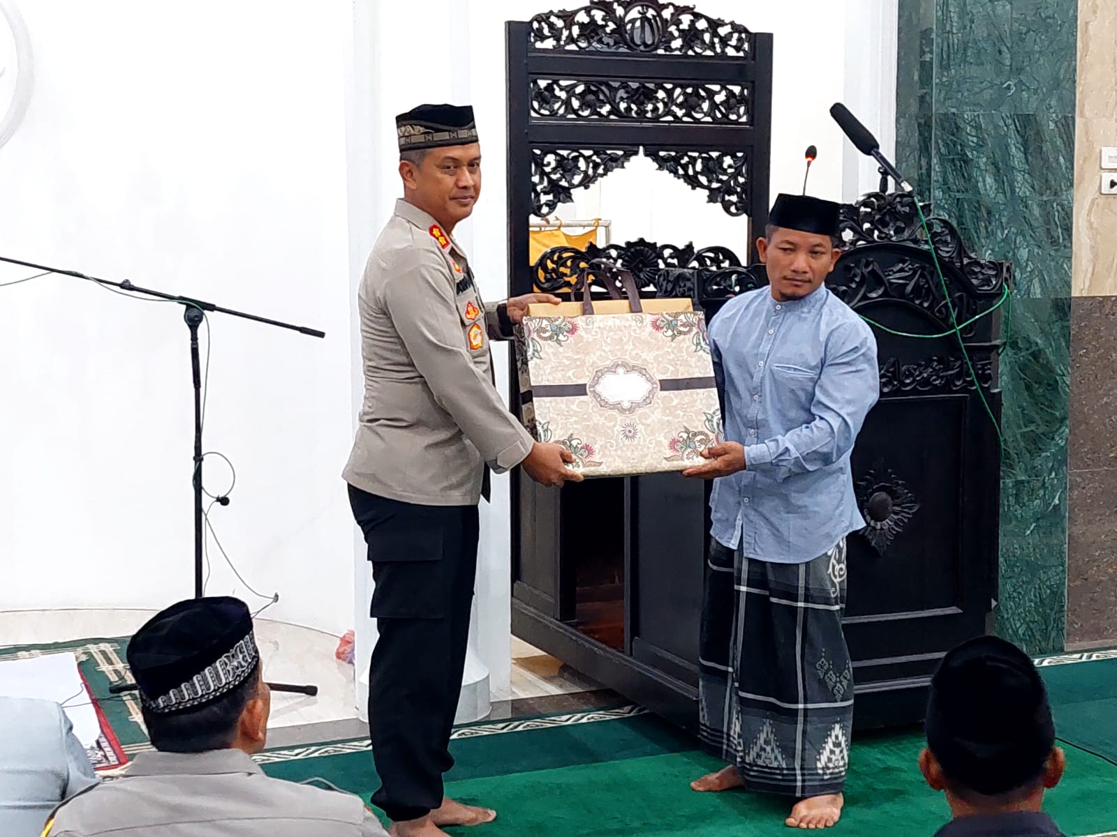 Gunakan hak pilih dan sukseskan Pilkada 2024 ini yang tinggal beberapa hari lagi dengan rasa aman, nyaman dan damai”Tutup AKBP Dody dilanjutkan pemberian cinderamata kepada pengurus masjid.