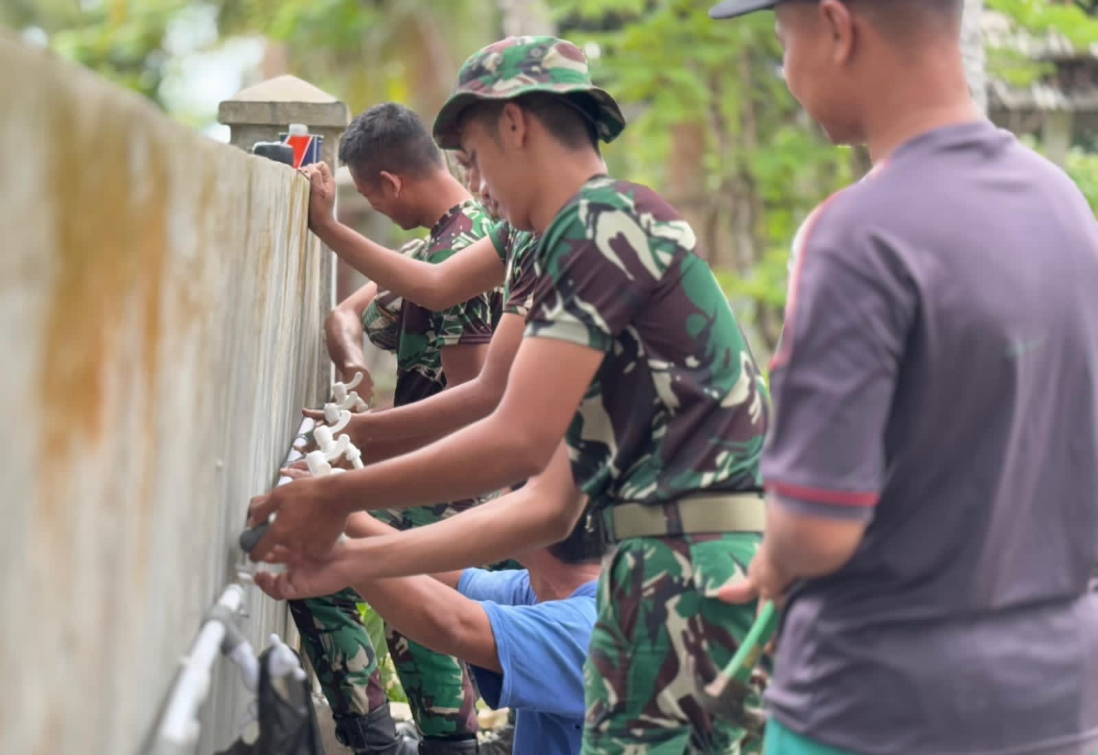 Bireuen – Anggota Satuan Tugas (Satgas) TNI Manunggal Membangun Desa (TMMD) Ke-123 Kodim 0111/Bireuen terus berupaya meningkatkan kesejahteraan masyarakat melalui penyediaan infrastruktur air bersih. Salah satu wujud nyata dari upaya tersebut adalah pemasangan pipa dan kran air pada sumur bor yang telah dibangun di Desa Meunasah Tambo, Kecamatan Peudada, Kabupaten Bireuen. Sabtu (15/03/2025).
