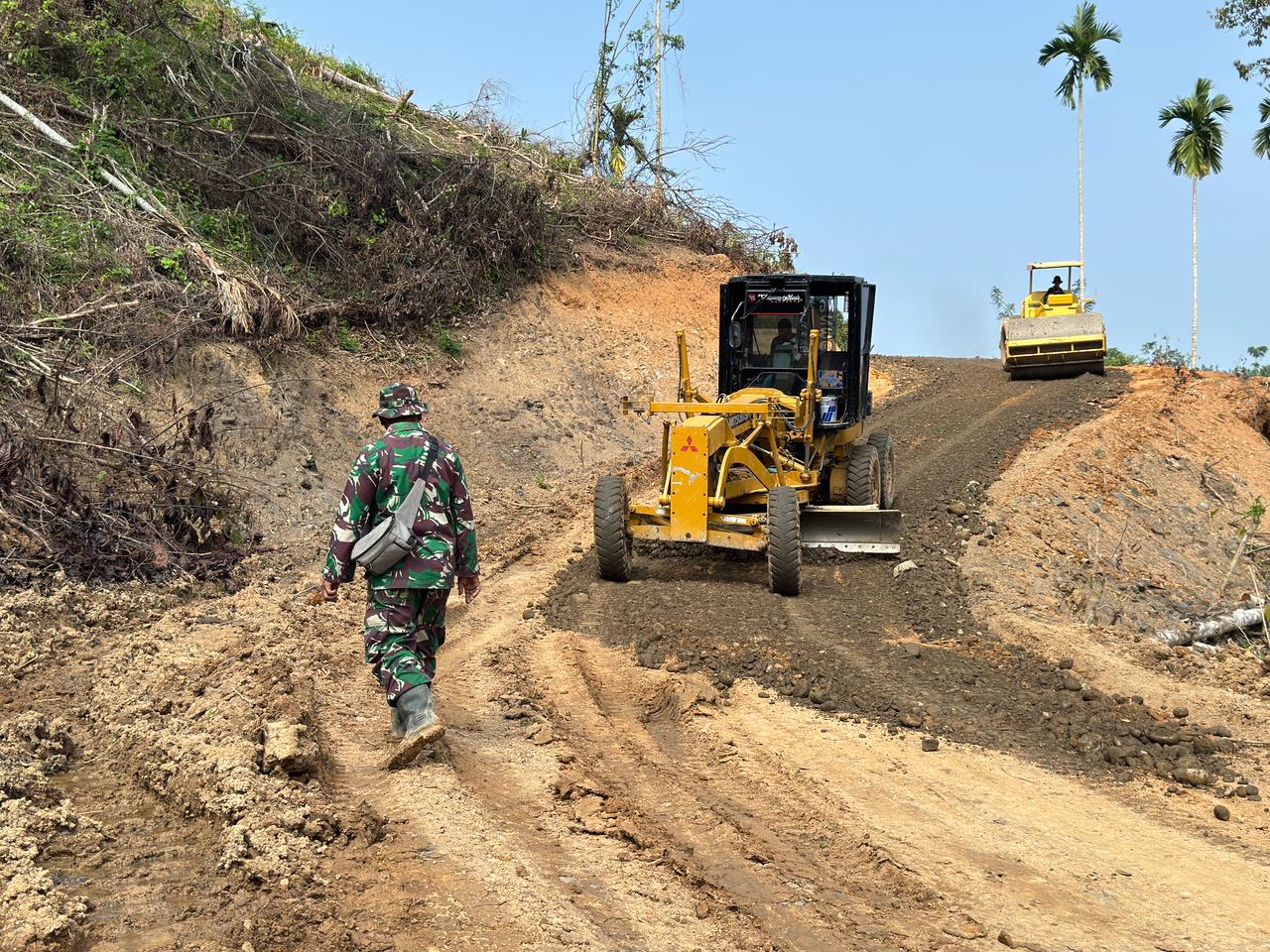 Kegiatan pengerasan jalan ini berlangsung dengan penuh semangat dan gotong royong, menegaskan bahwa keberhasilan pembangunan desa adalah hasil kolaborasi antara TNI dan warga setempat.