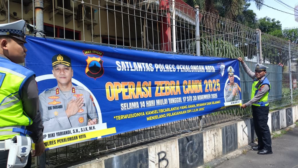 PEKALONGAN KOTA – Indonesia investigasi.com – Polres Pekalongan Kota – Polda Jateng – Satlantas Polres Pekalongan Kota terus meningkatkan intensitas sosialisasi Operasi Zebra Candi 2025 dengan memasang spanduk imbauan keselamatan berlalu lintas di sejumlah titik strategis. Kegiatan yang berlangsung pada Kamis (20/11/2025), dipimpin Kanit Kamsel Ipda Sukendro, S.H., bersama anggota Subsatgas Dikmas Lantas.