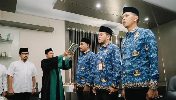 Pelantikan berlangsung di ruang kerja Sekda dan disaksikan Asisten II Setdakab Bireuen Mawardi, S.STP., M.Si, rohaniwan, serta sejumlah pejabat dari Badan Pengembangan Sumber Daya Manusia (BPSDM).